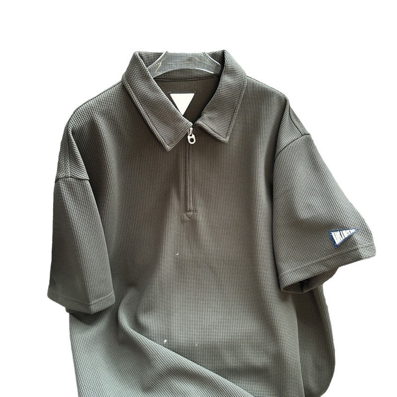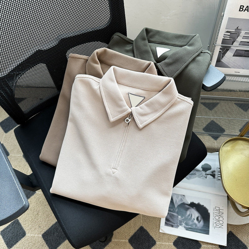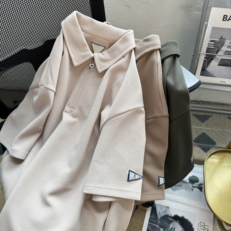 Японская ретро летняя футболка polo с молнией, короткий рукав, на молнии