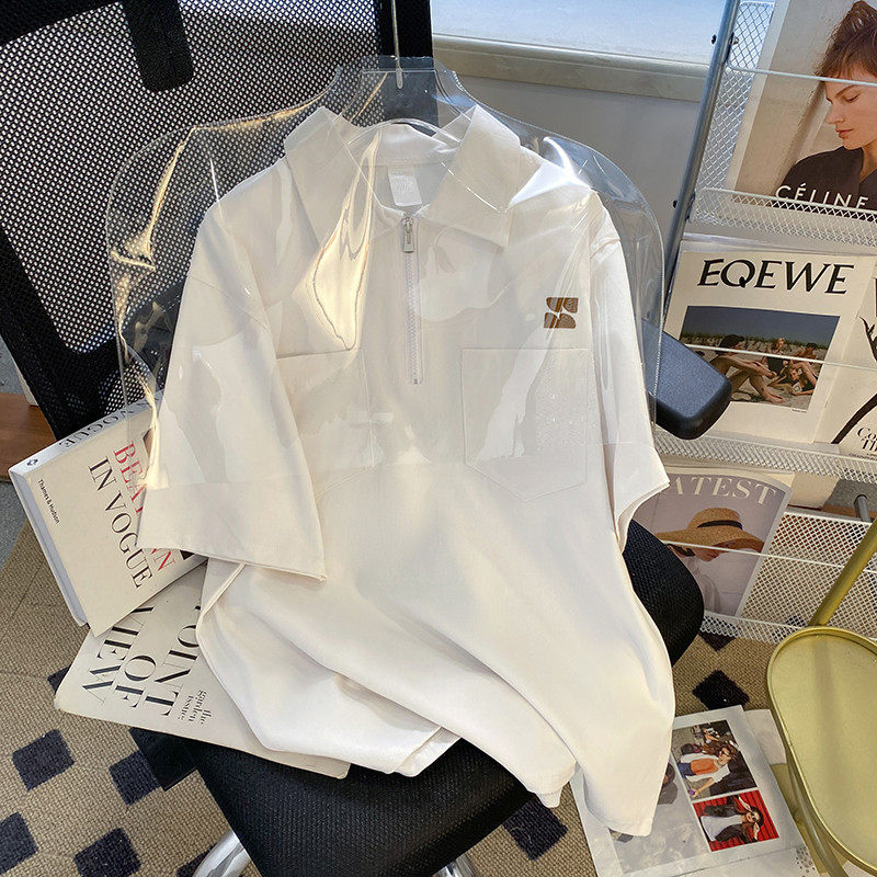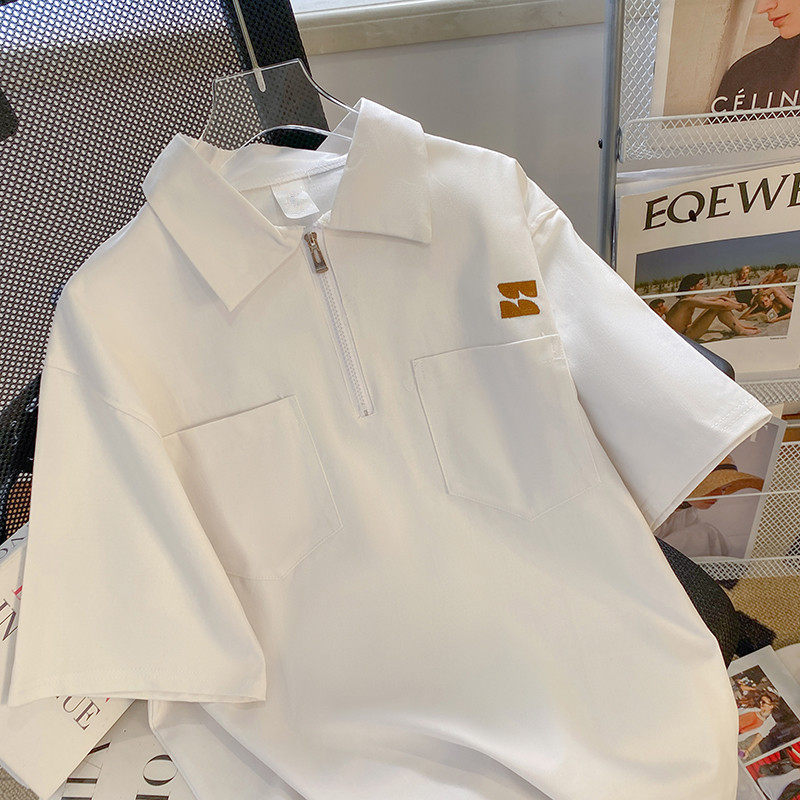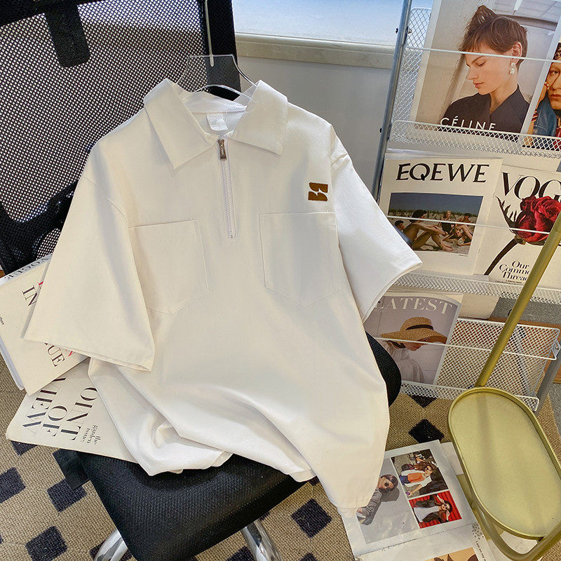 Tide, японская футболка polo с молнией, трендовая рубашка, на молнии, оверсайз