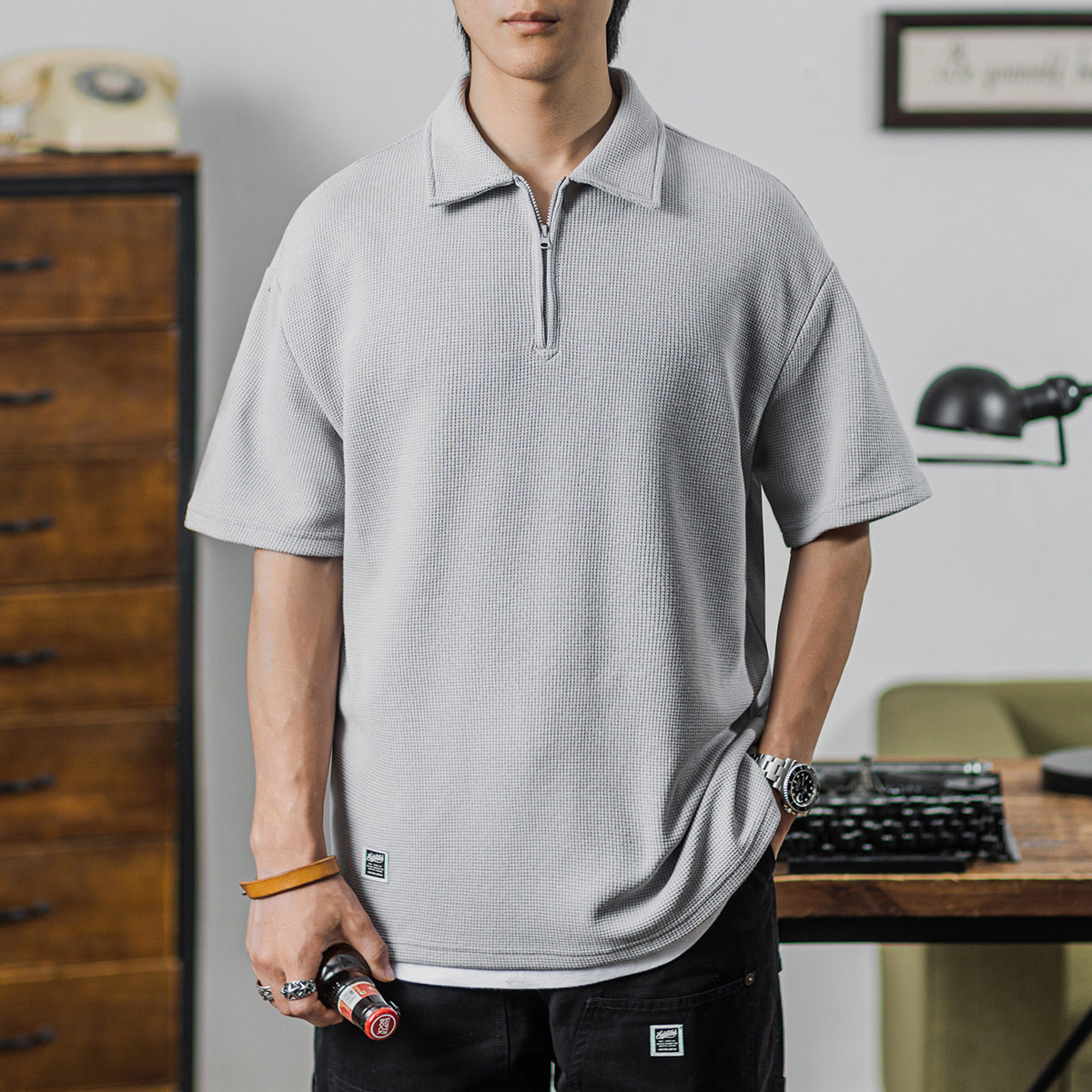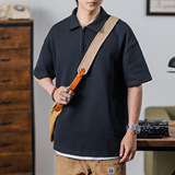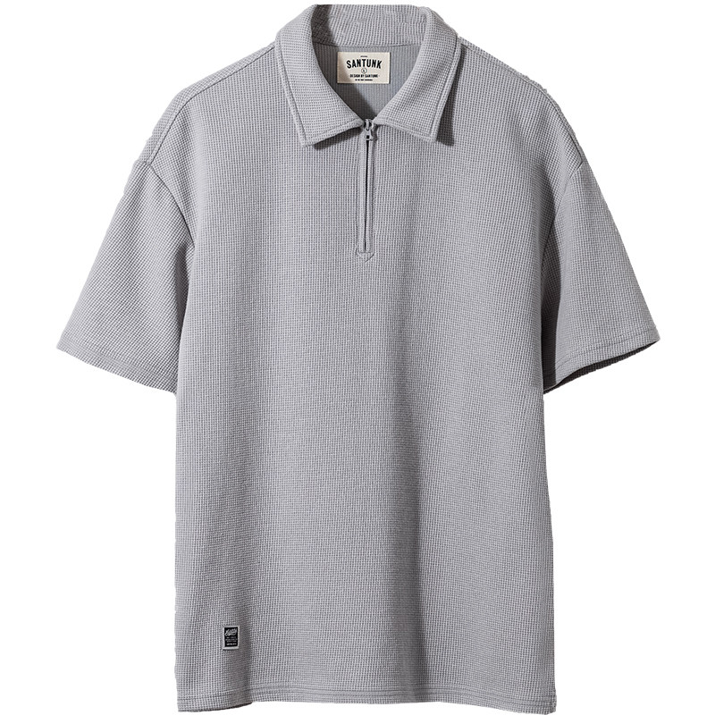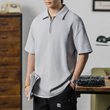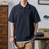 Ретро трикотажная футболка polo с молнией, в американском стиле, короткий рукав, на молнии
