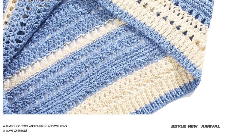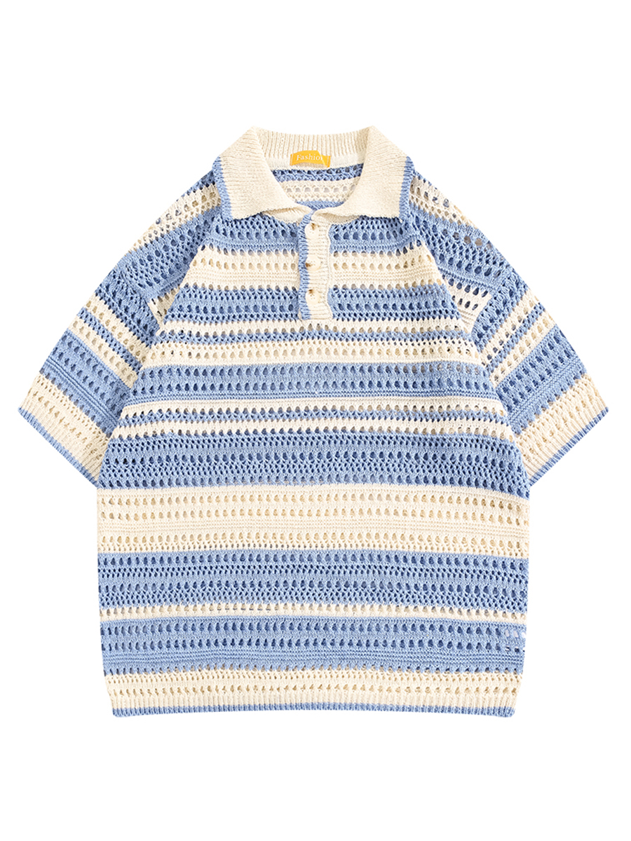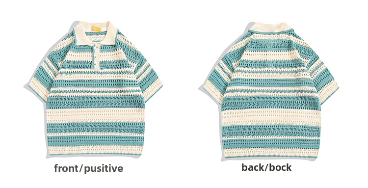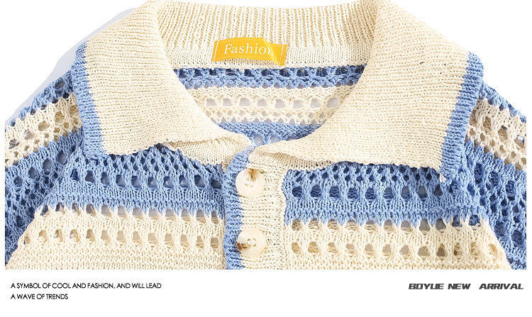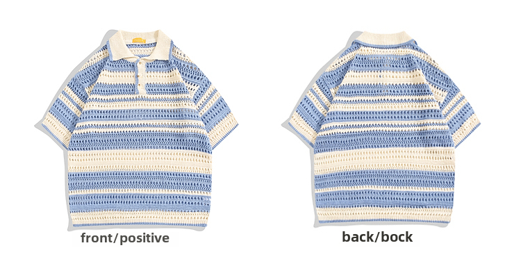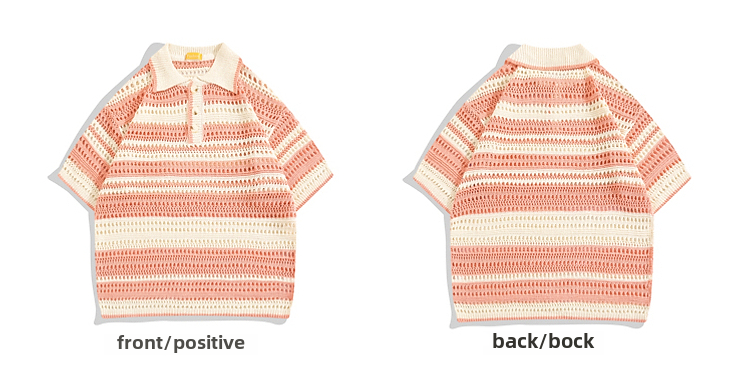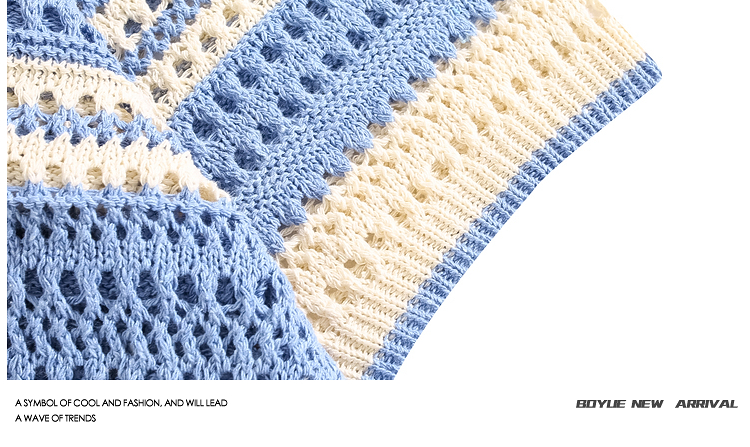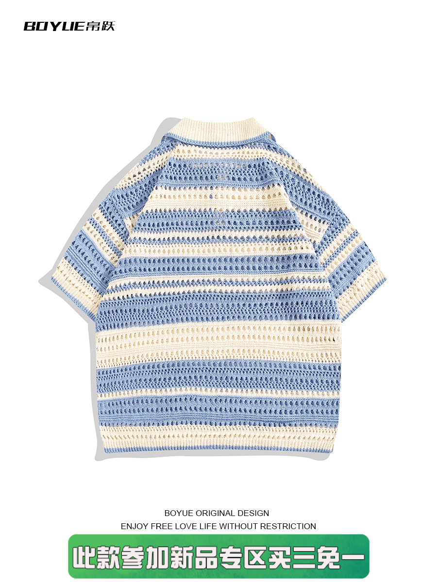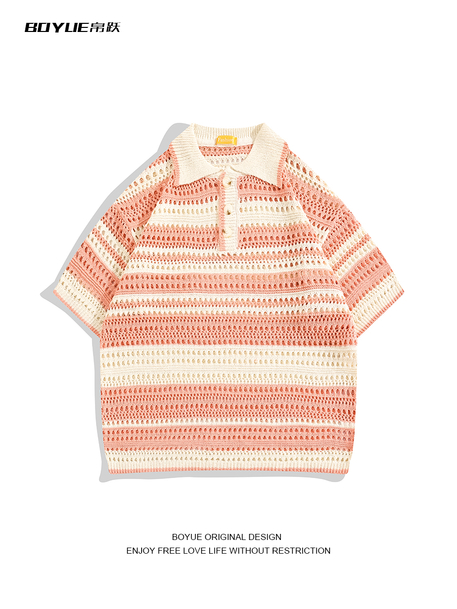 Boyue Jumping Hollow Stripes Короткие рукава в летней корейской версии пары пары в стиле Хараджуки с высоким уровнем высокого уровня.
