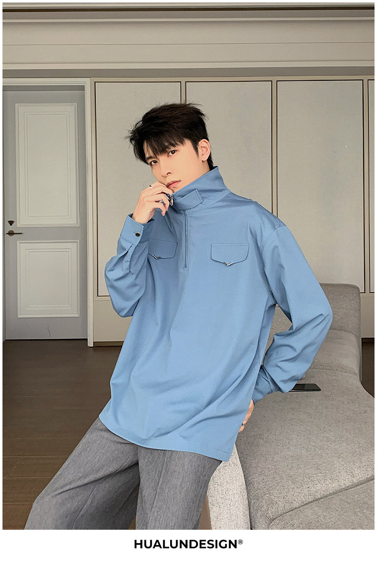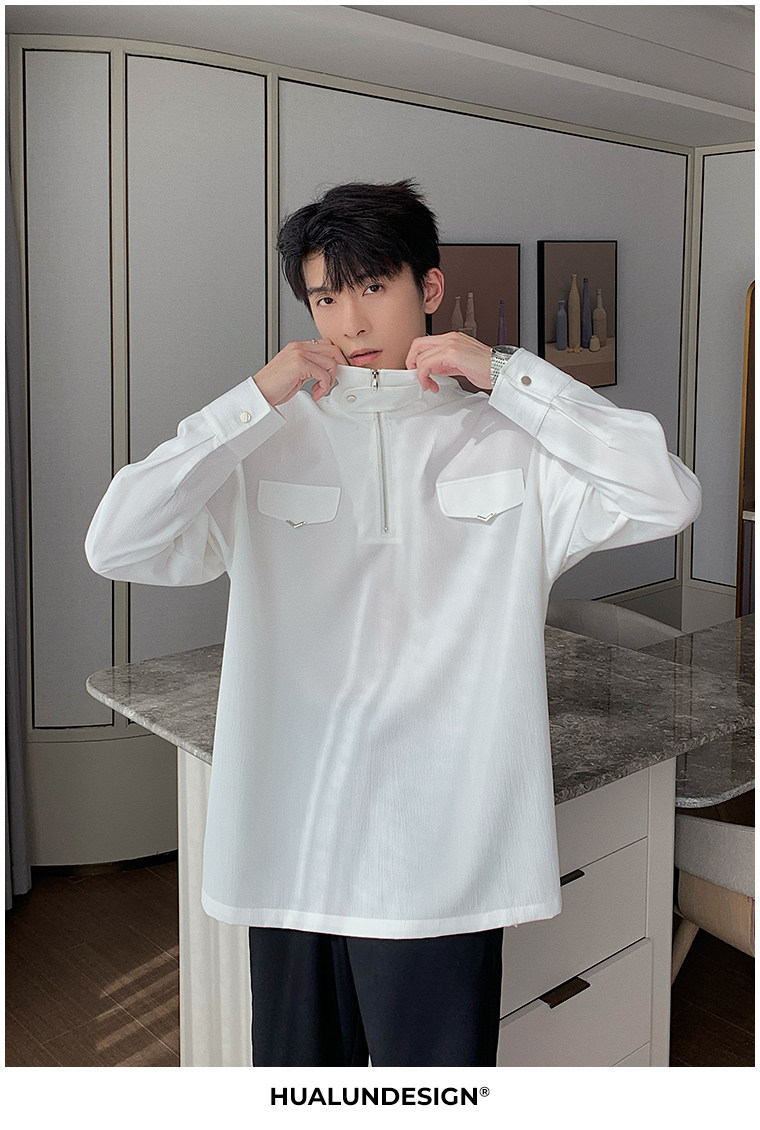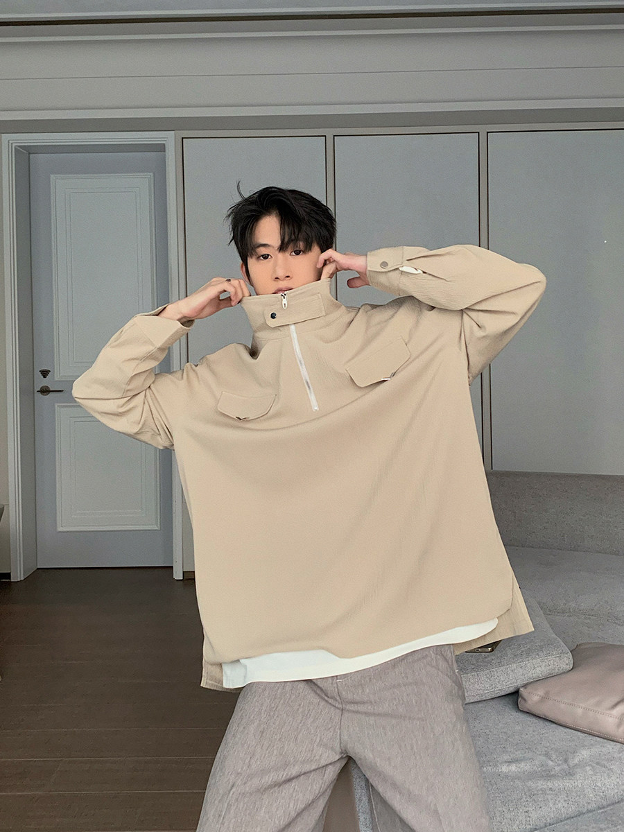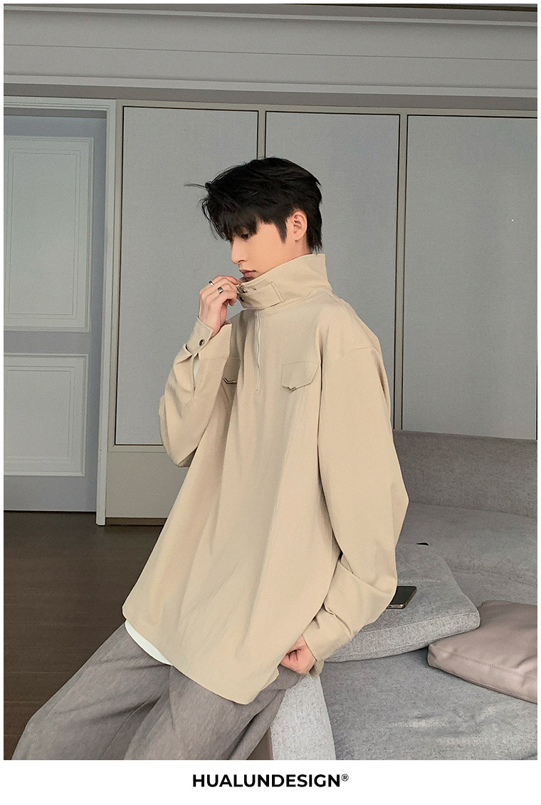 Осенняя футболка polo, трендовая рубашка, оверсайз, высокий воротник