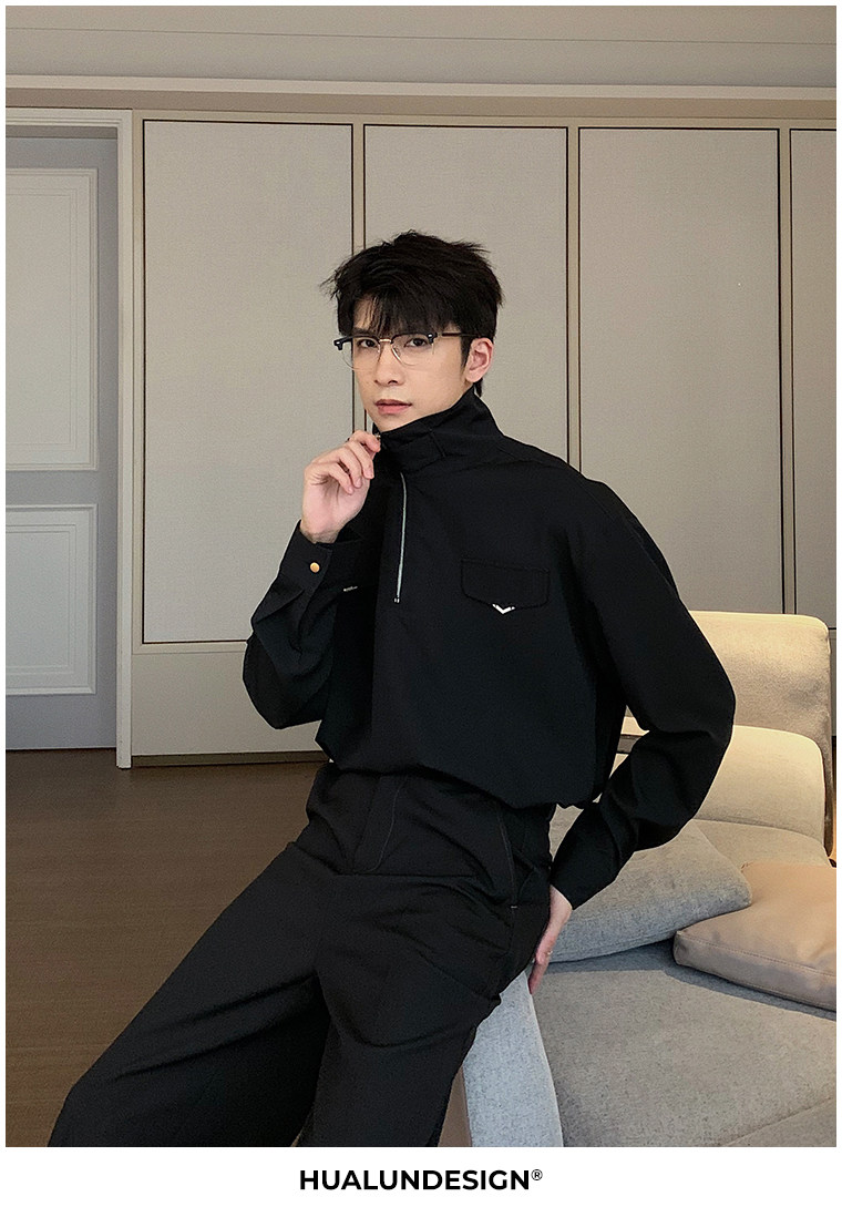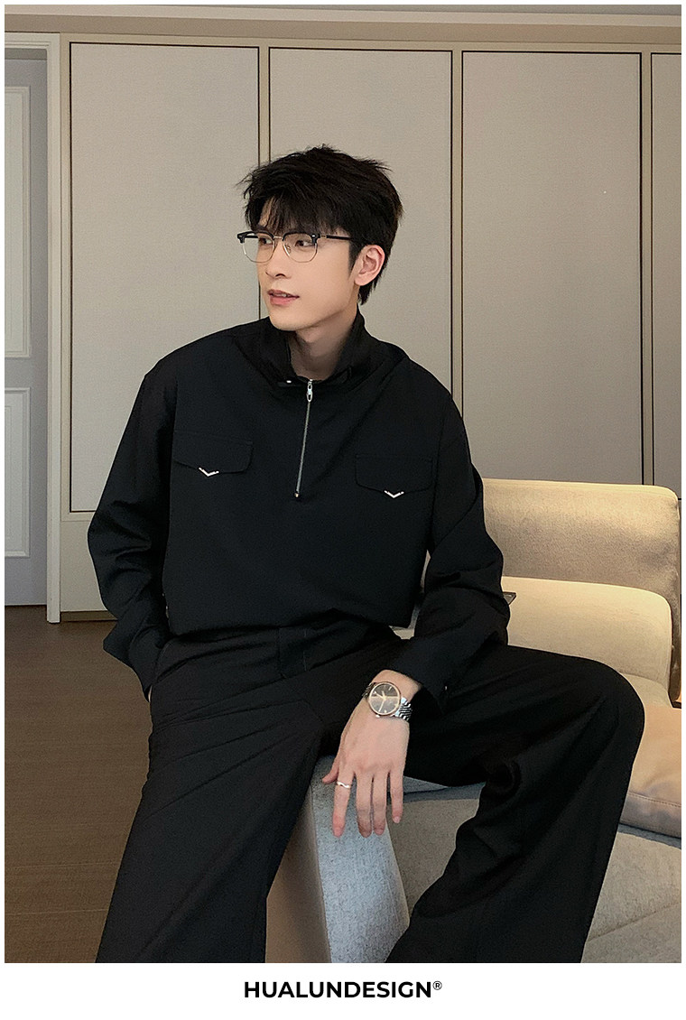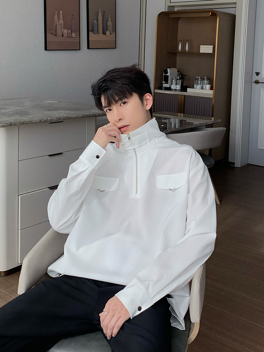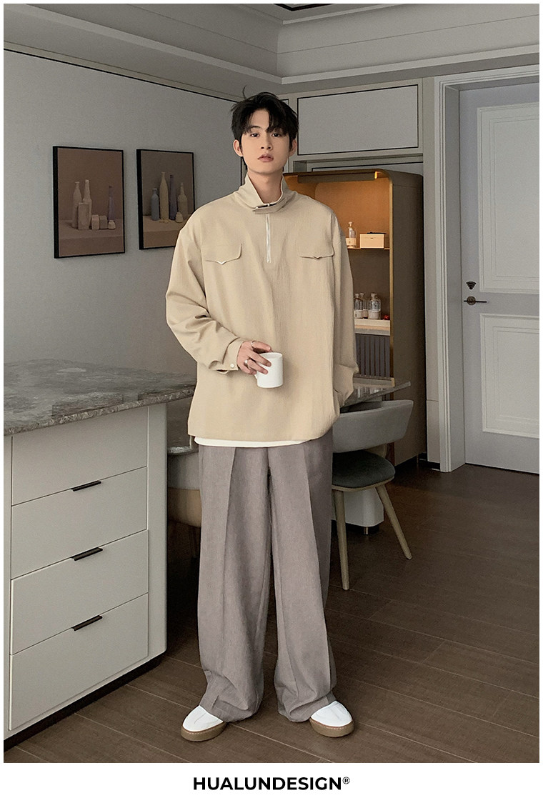 Осенняя футболка polo, трендовая рубашка, оверсайз, высокий воротник
