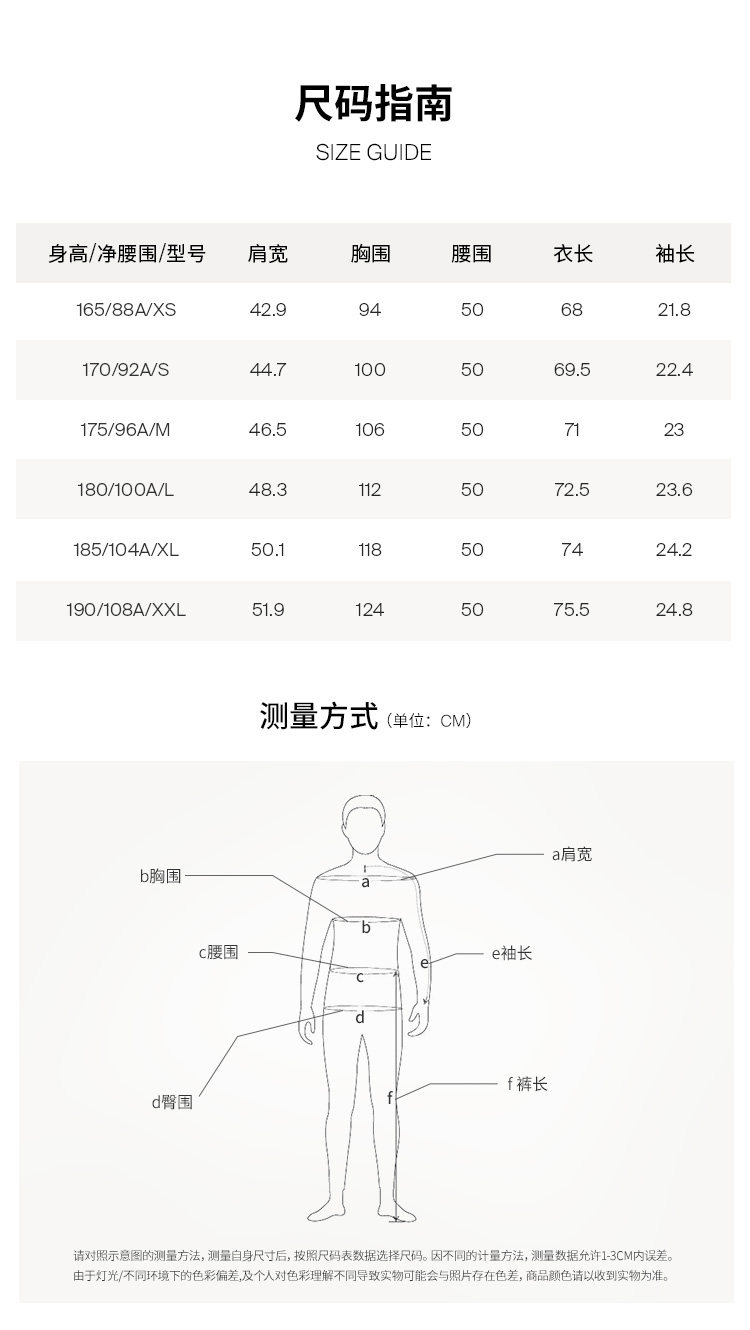 | Размер: | 165/88A/XS, 170/92A/S, 175/96A/M, 180/100A/L, 185/104A/XL, 190/108A/XXL |