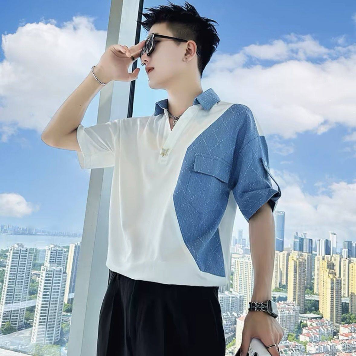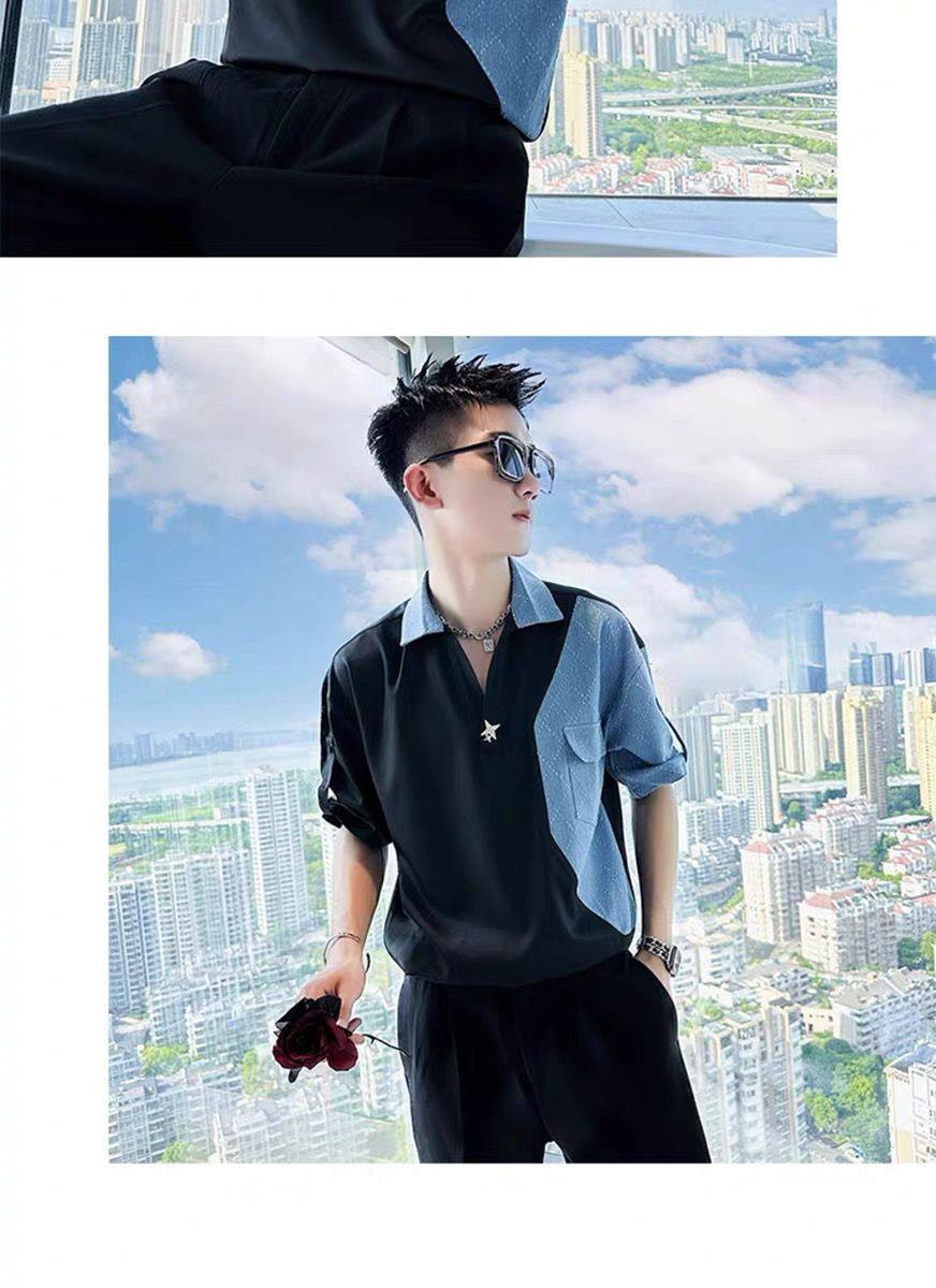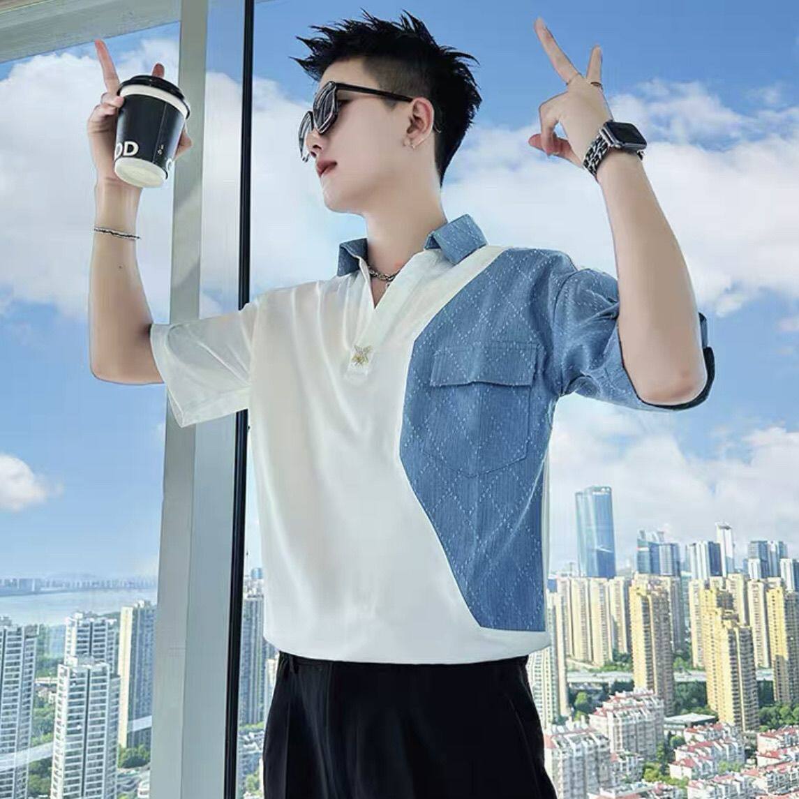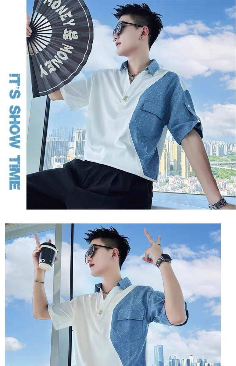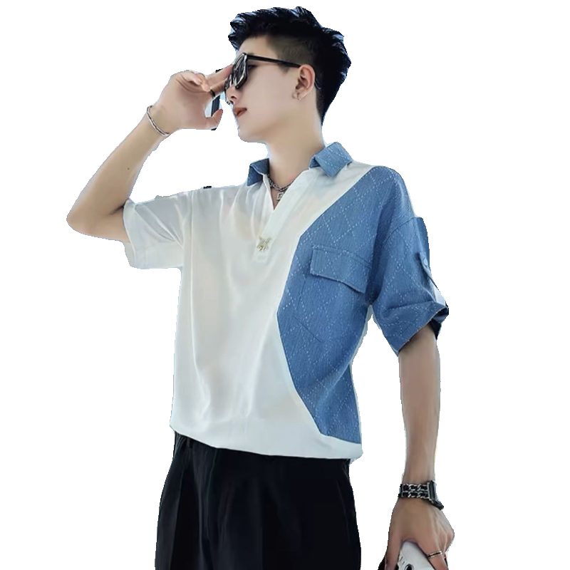 Джинсовая трендовая летняя тонкая шелковая футболка polo, короткий рукав, V-образный вырез, изысканный стиль