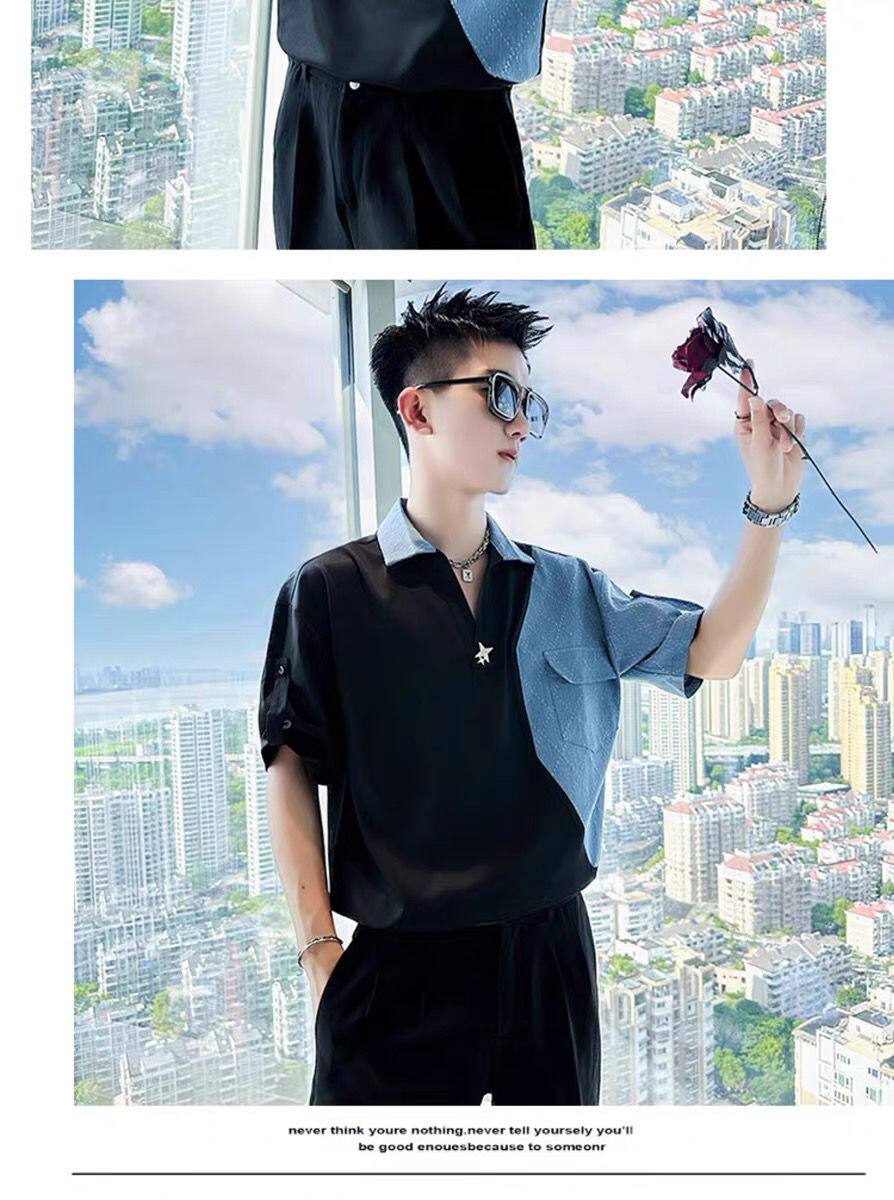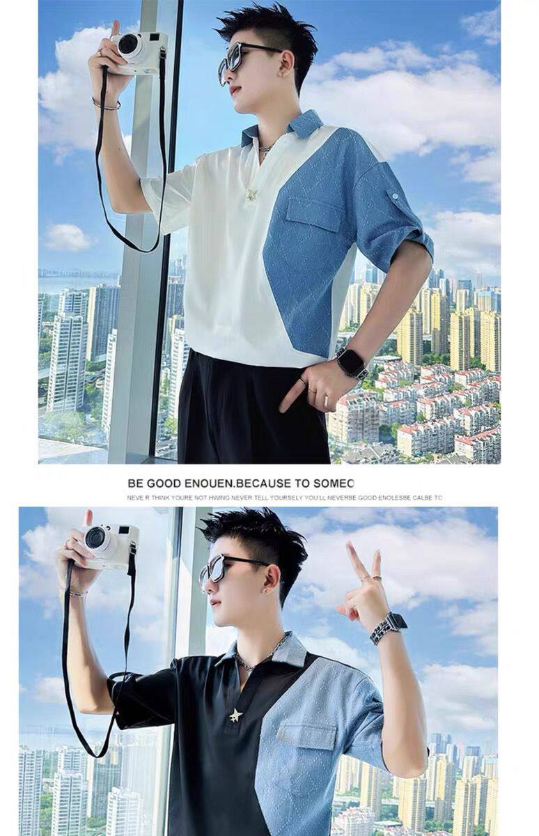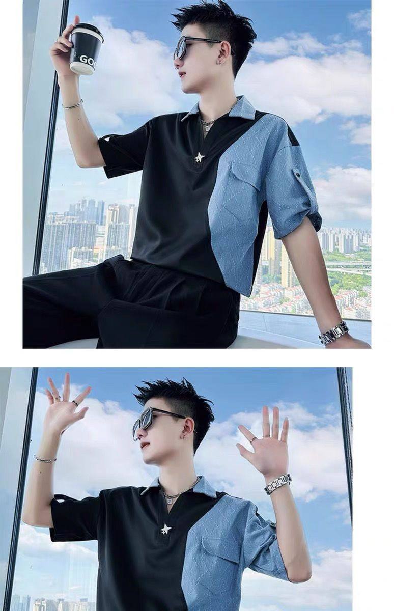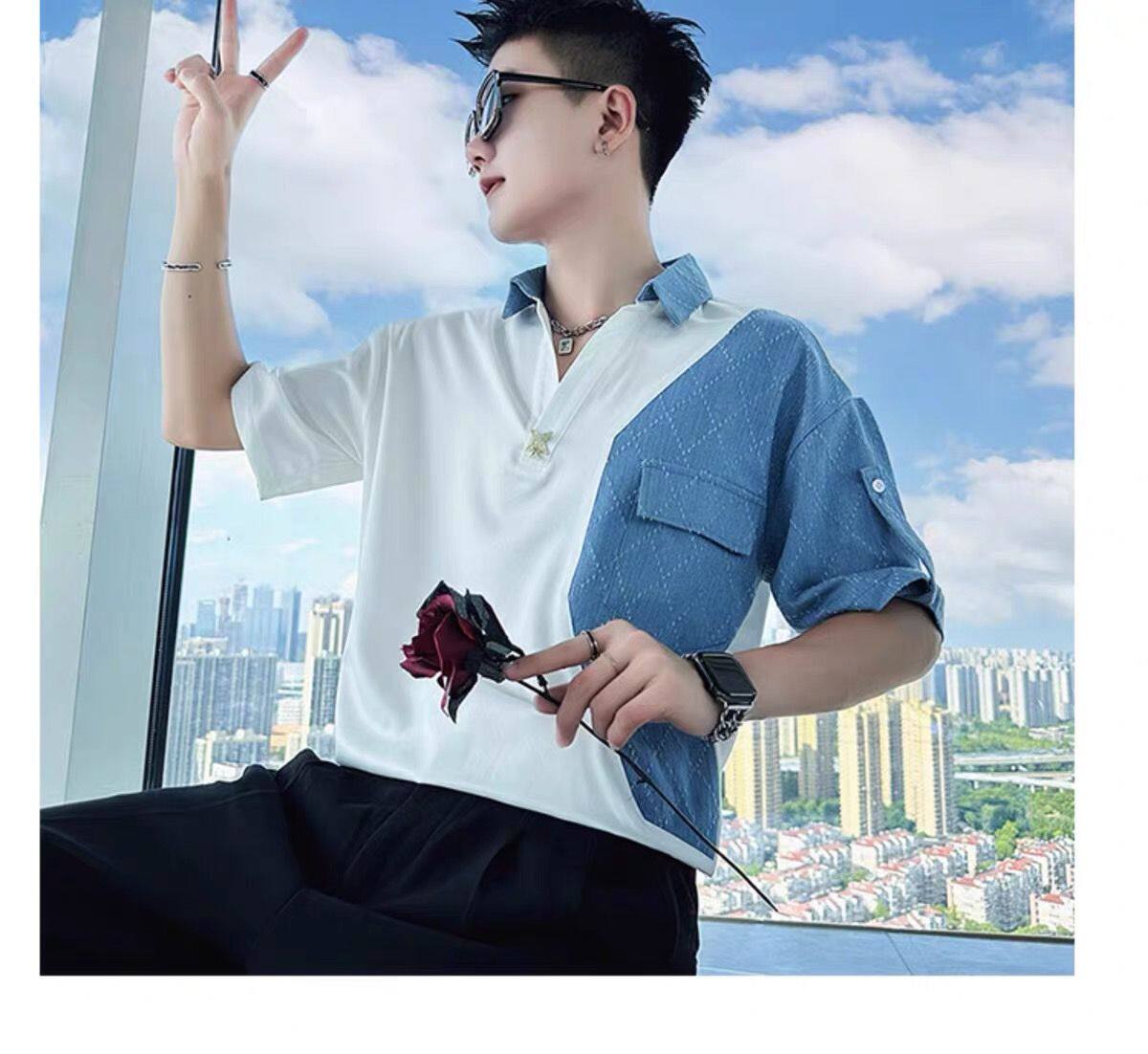 Джинсовая трендовая летняя тонкая шелковая футболка polo, короткий рукав, V-образный вырез, изысканный стиль