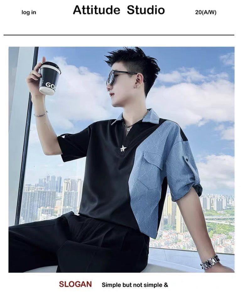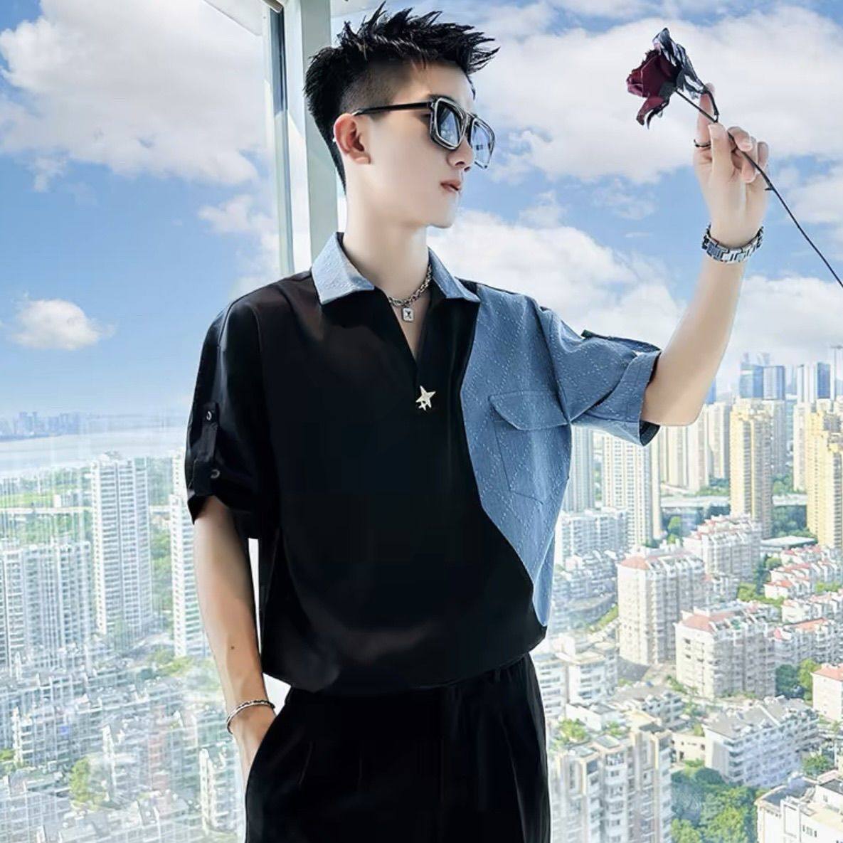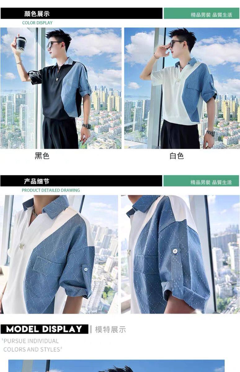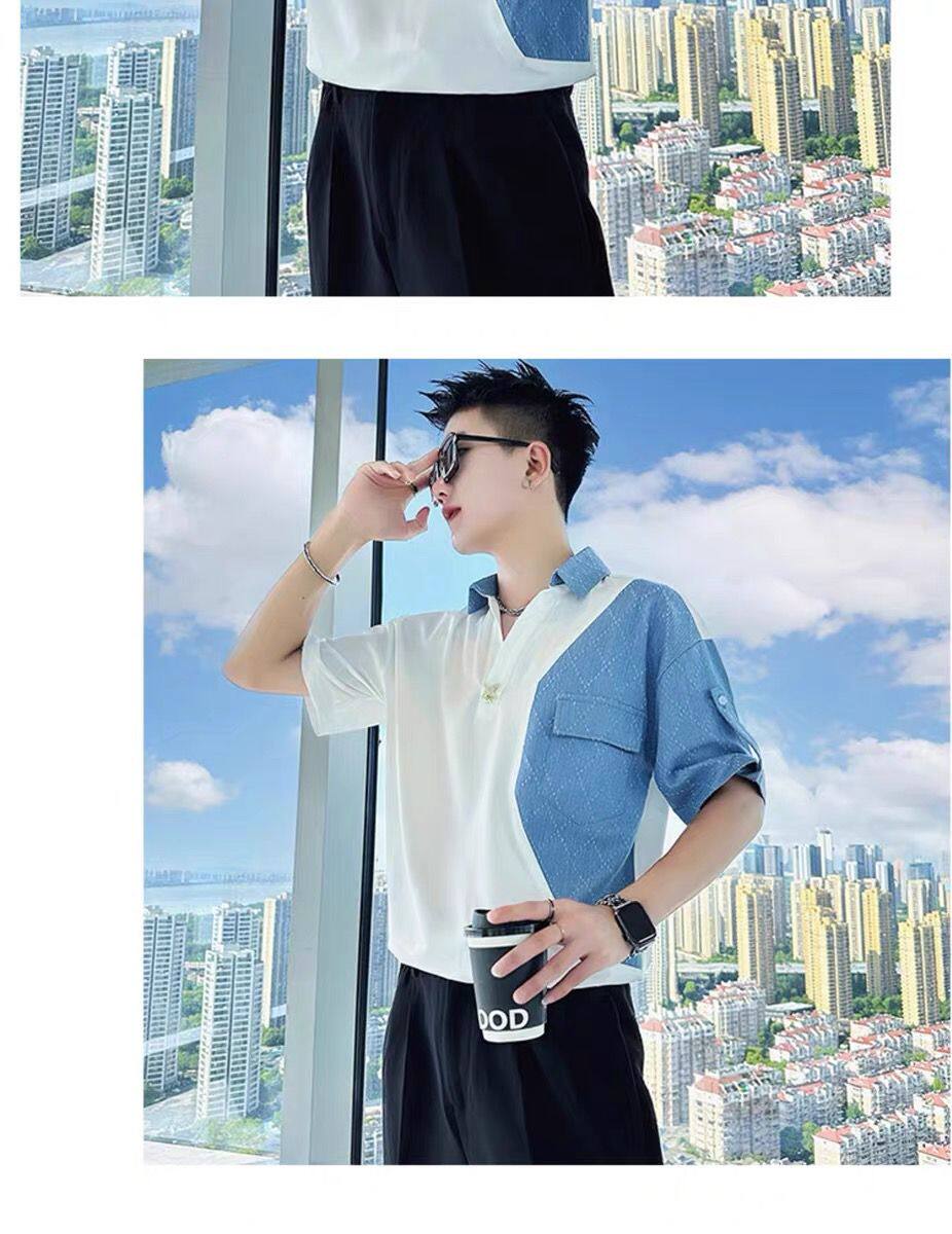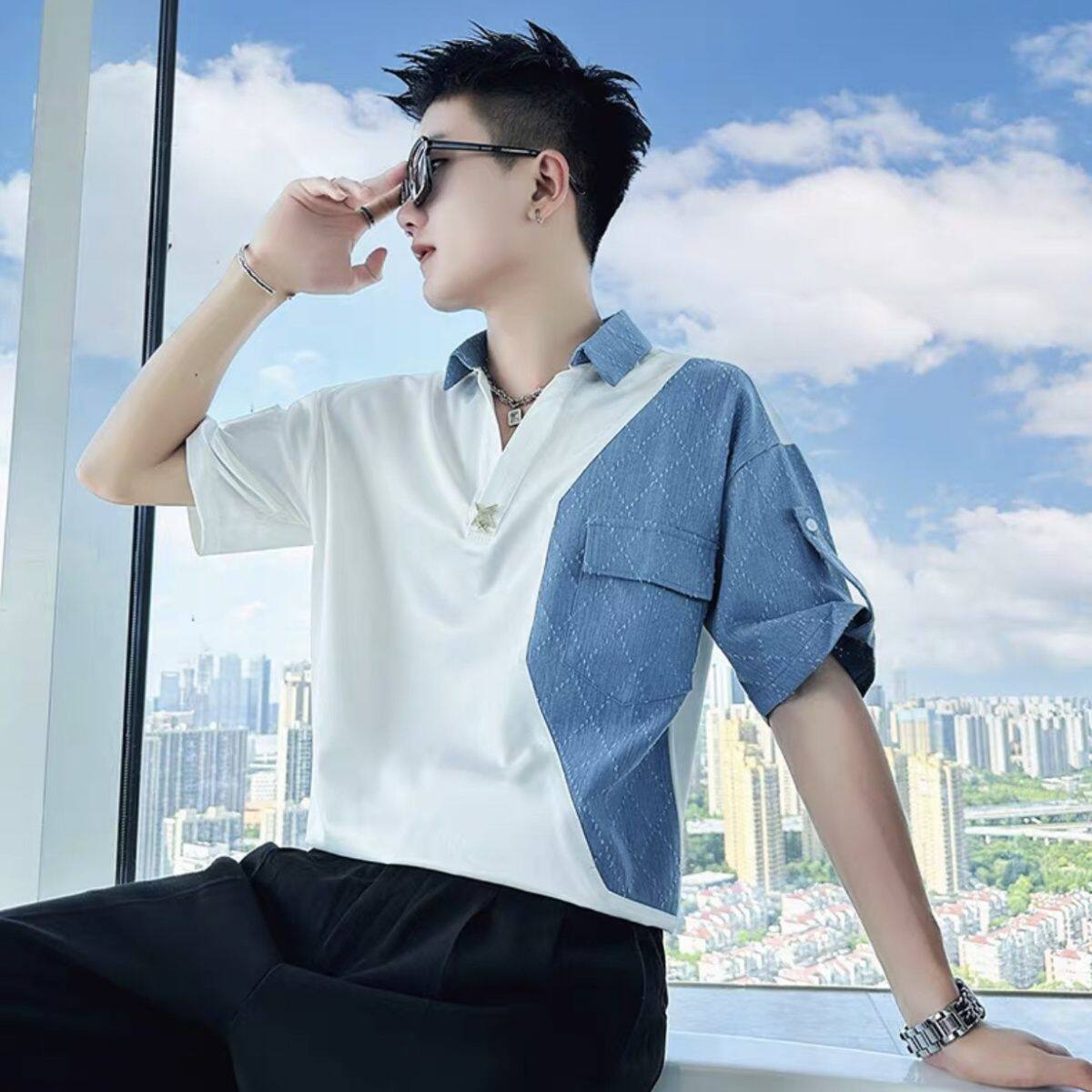 Джинсовая трендовая летняя тонкая шелковая футболка polo, короткий рукав, V-образный вырез, изысканный стиль
