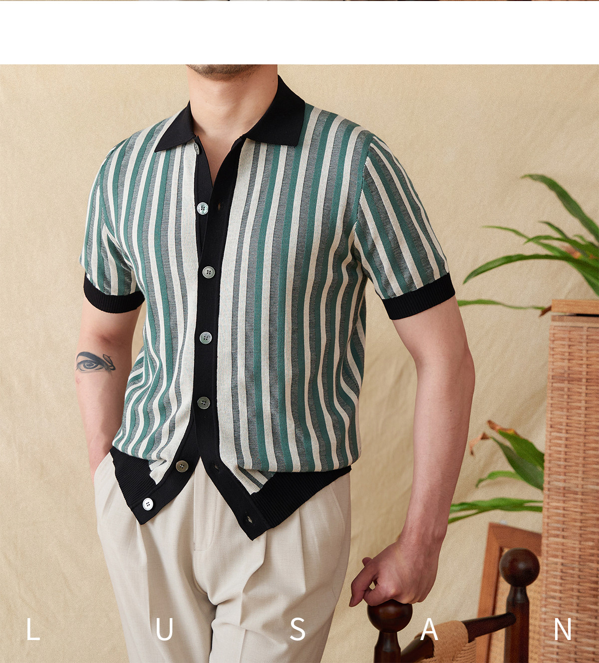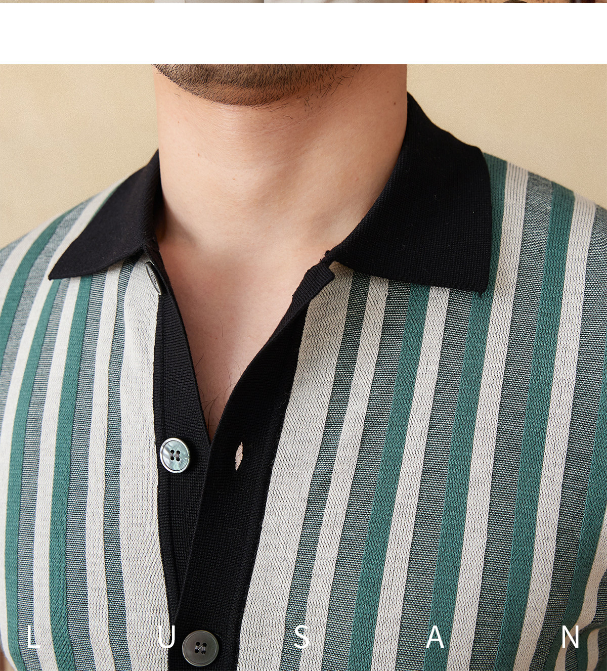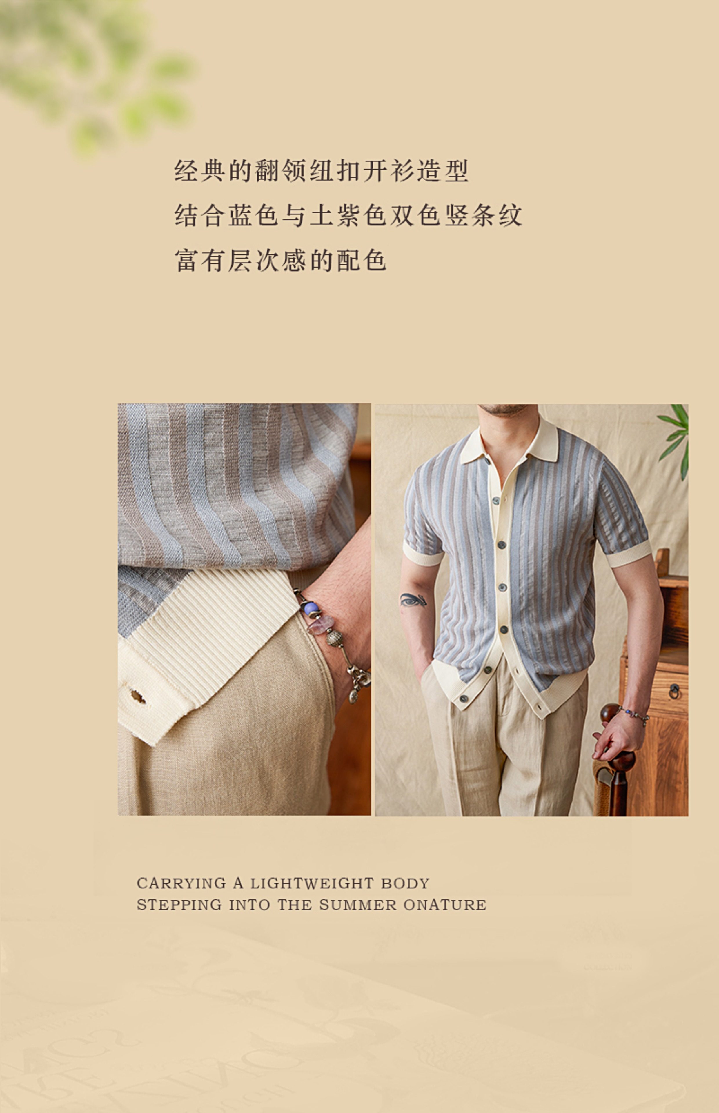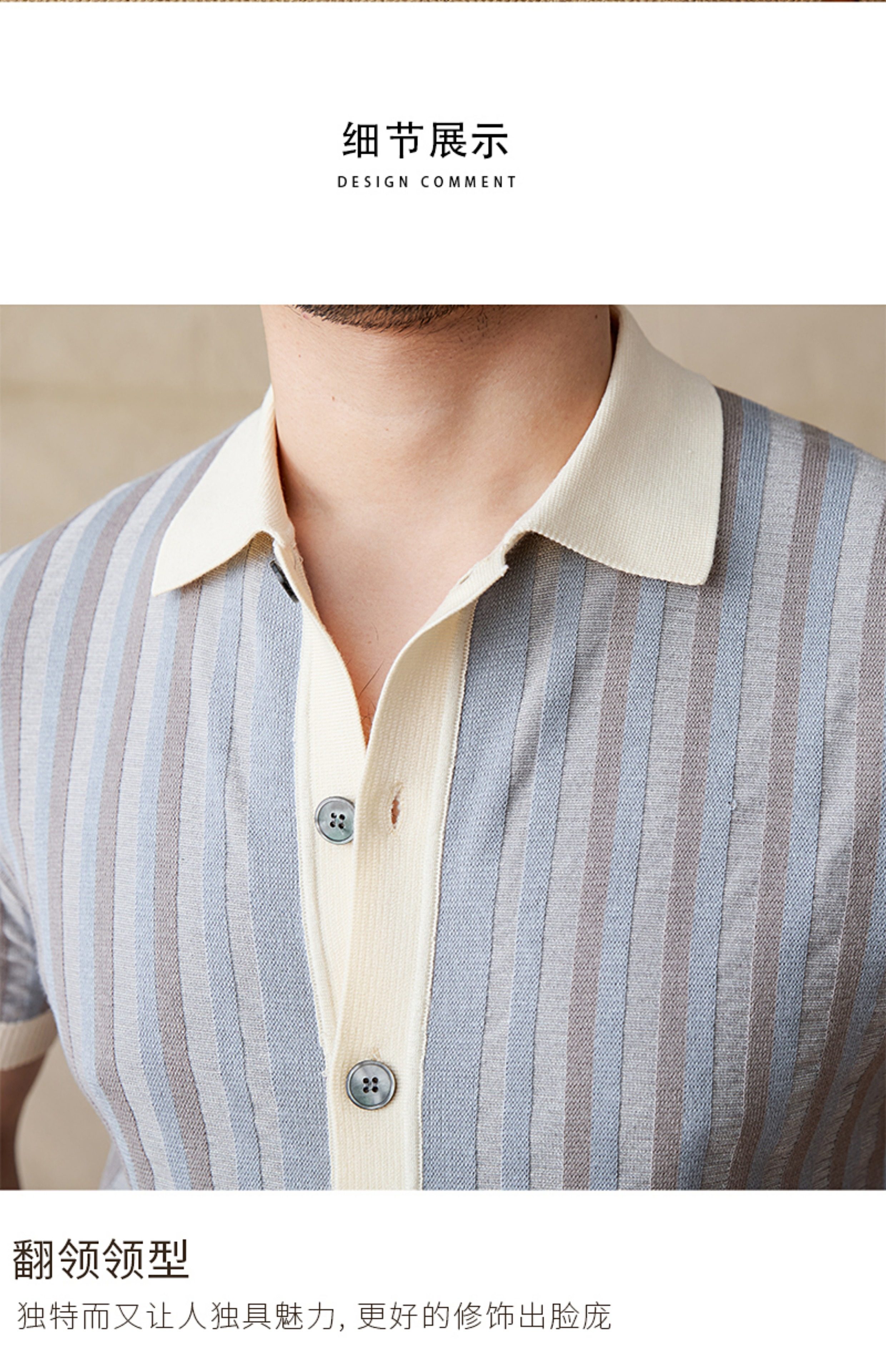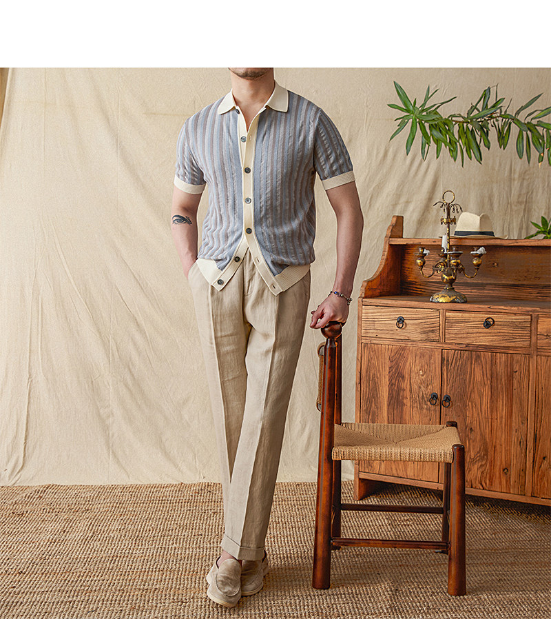 Мистер Лу Сан итальянский летний лацкат полосатый жаккардовый свитер сплайсинга в британском рубашке с коротки