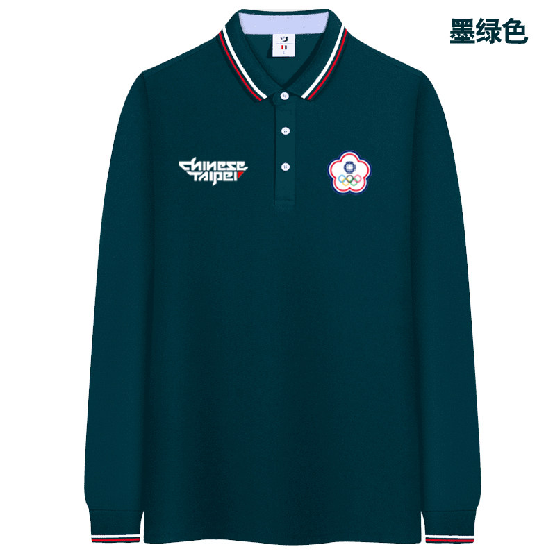 Китайский олимпийский пять -пять -роуд Taipei Английский лейбл Chinesetaipei Bingshi шелк -Silk Eye Long -sleeed T -For