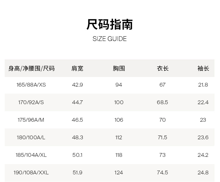 | Размер: | 165/88A/XS, 170/92A/S, 175/96A/M, 180/100A/L, 185/104A/XL, 190/108A/XXL |