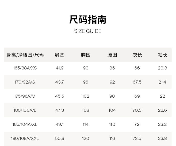 | Размер: | 165/88A/XS, 170/92A/S, 175/96A/M, 180/100A/L, 185/104A/XL, 190/108A/XXL |
