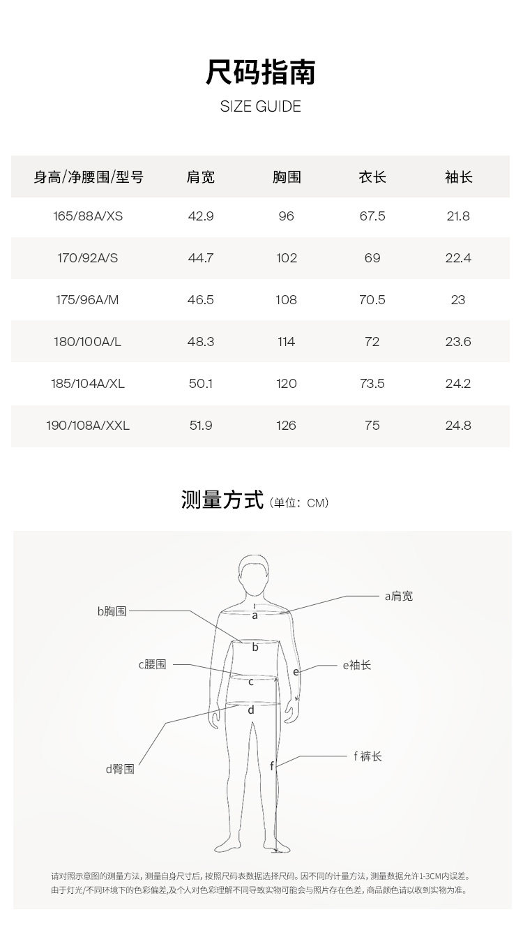 | Размер: | 165/88A/XS, 170/92A/S, 175/96A/M, 180/100A/L, 185/104A/XL, 190/108A/XXL |