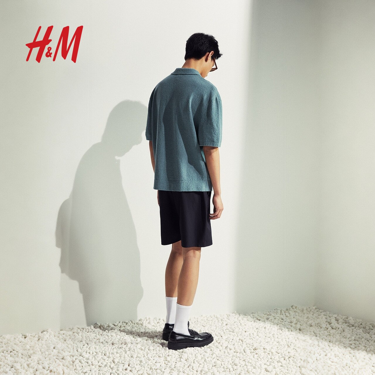 Мужская рубашка поло HM, новинка лета 2025, Свободная трикотажная рубашка поло из махровой ткани с застежкой на подоле 1281072