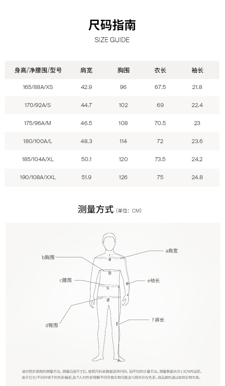| Размер: | 165/88A/XS, 170/92A/S, 175/96A/M, 180/100A/L, 185/104A/XL, 190/108A/XXL |