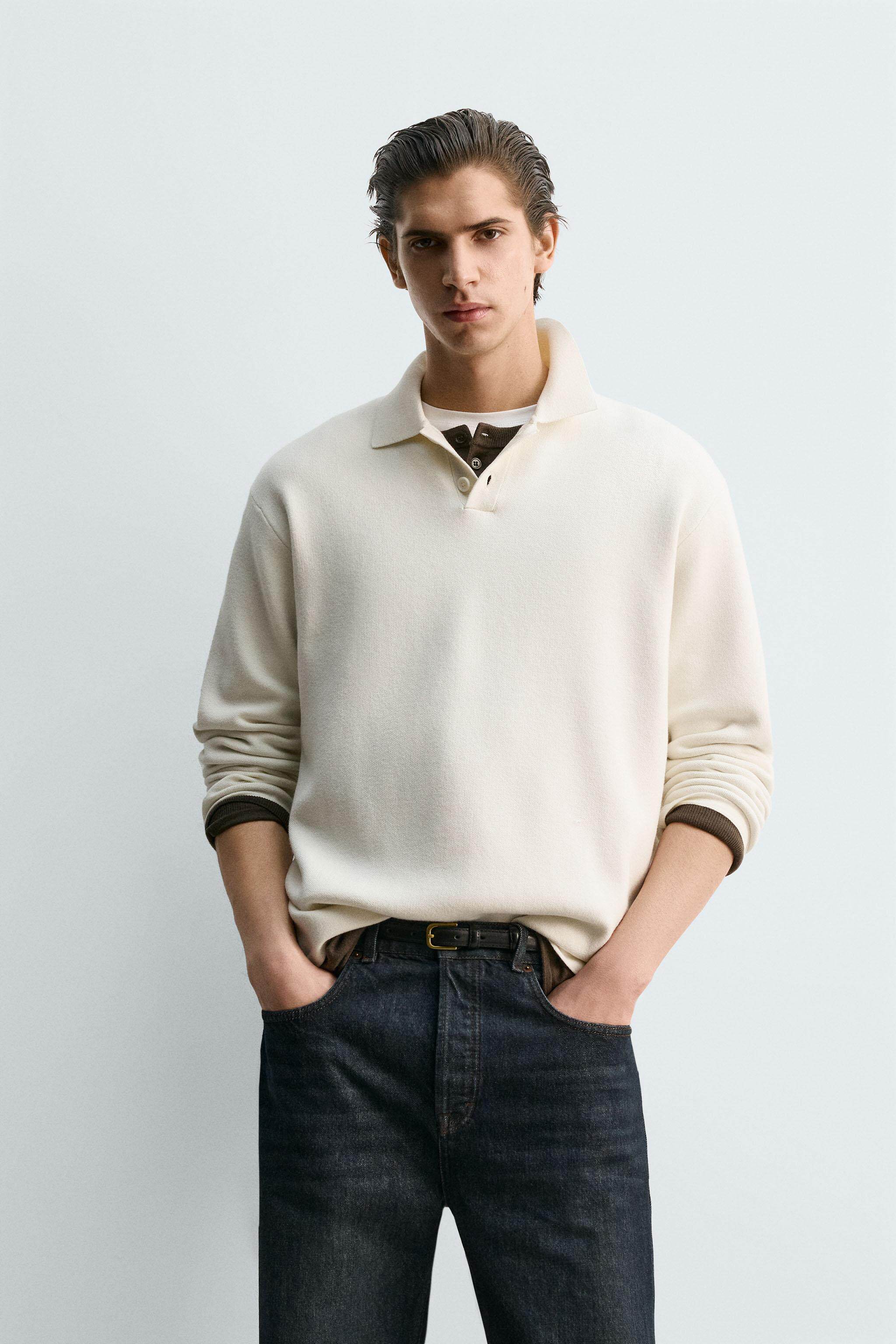 ZARA Специальное предложение 2025. Мужская свободная мягкая трикотажная рубашка-поло с длинными рукавами и лацканами 5536320 251