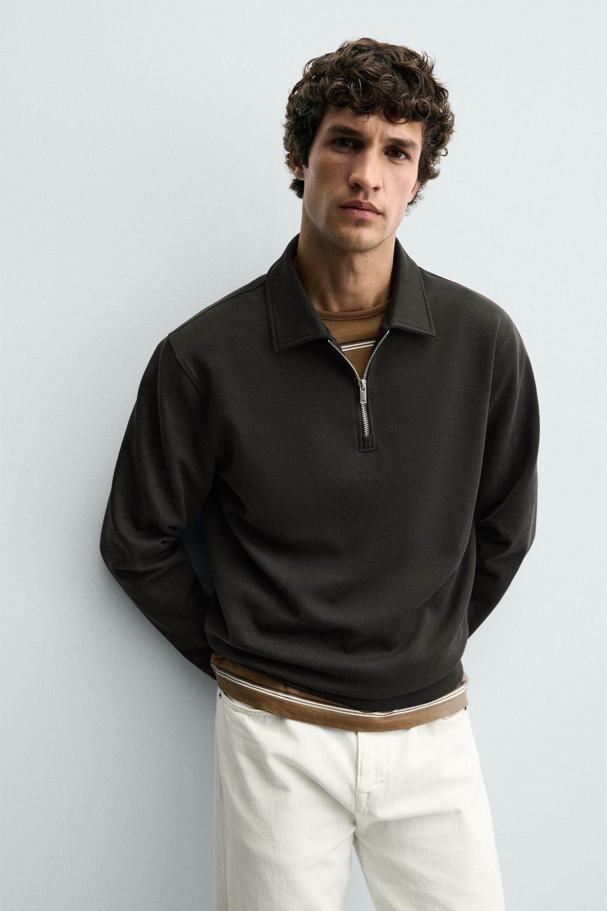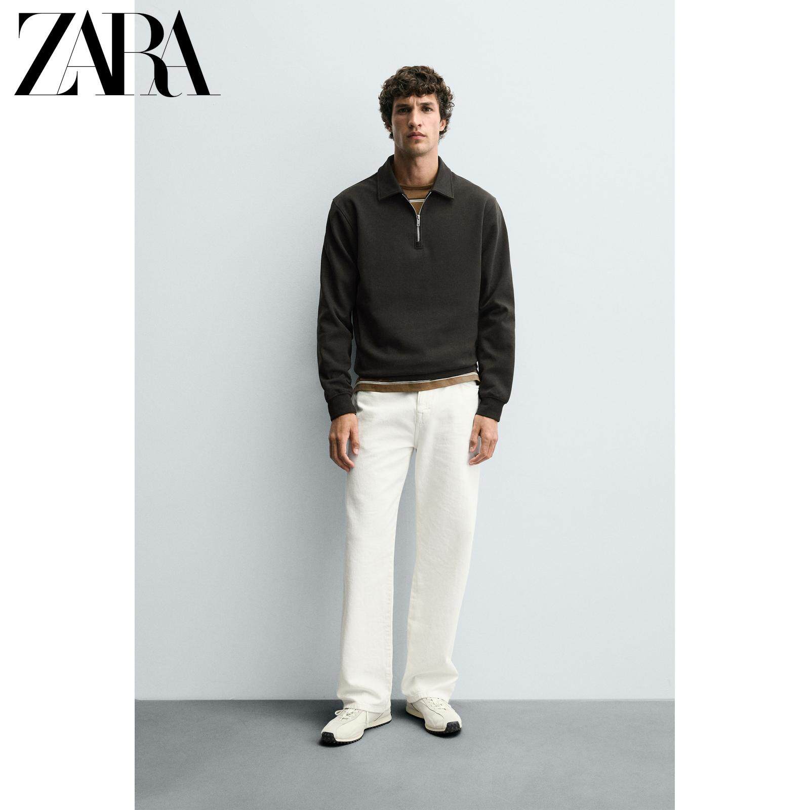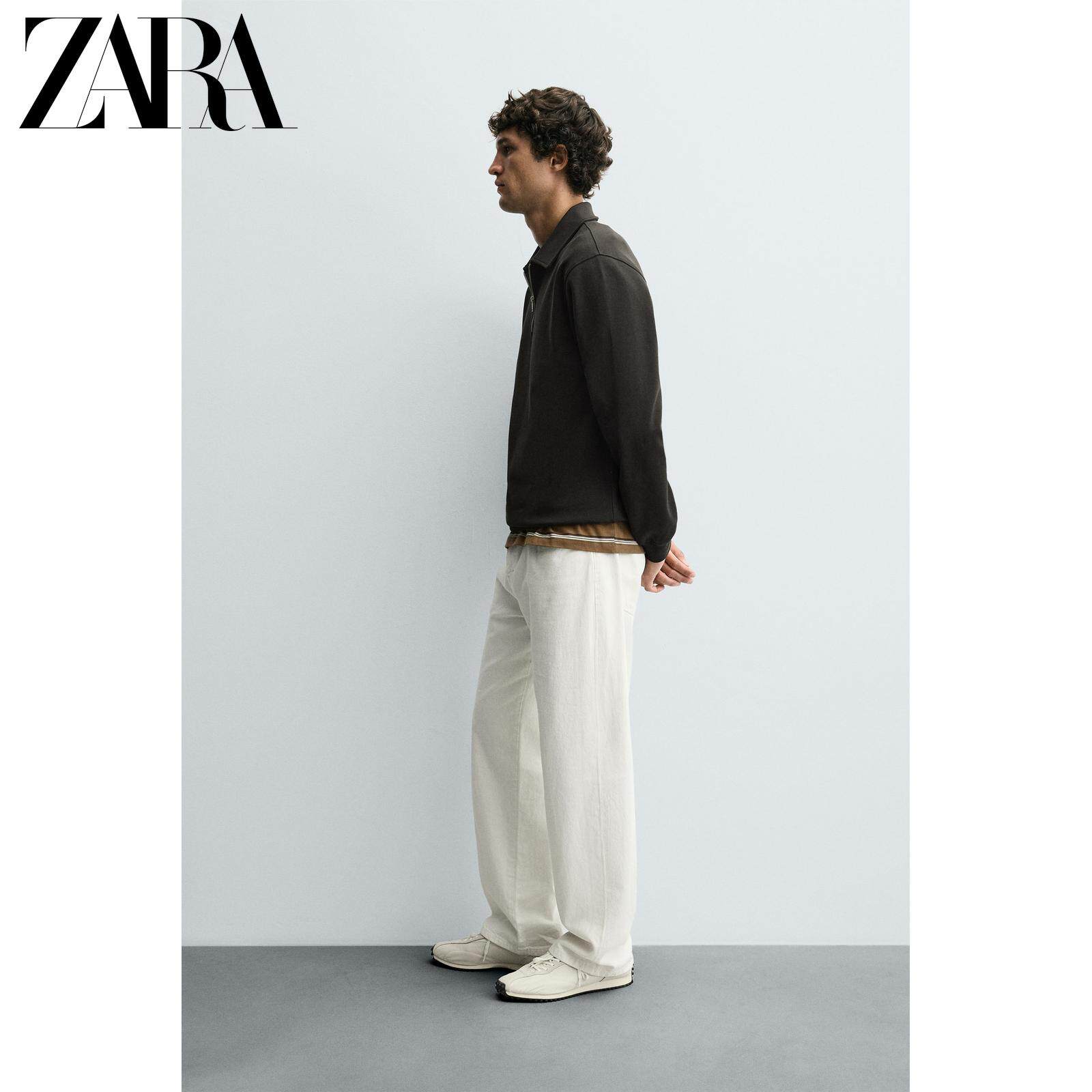 ZARA Осенние новинки 2025 года, мужская свободная рубашка-поло на молнии с лацканами и длинными рукавами 4092380 737