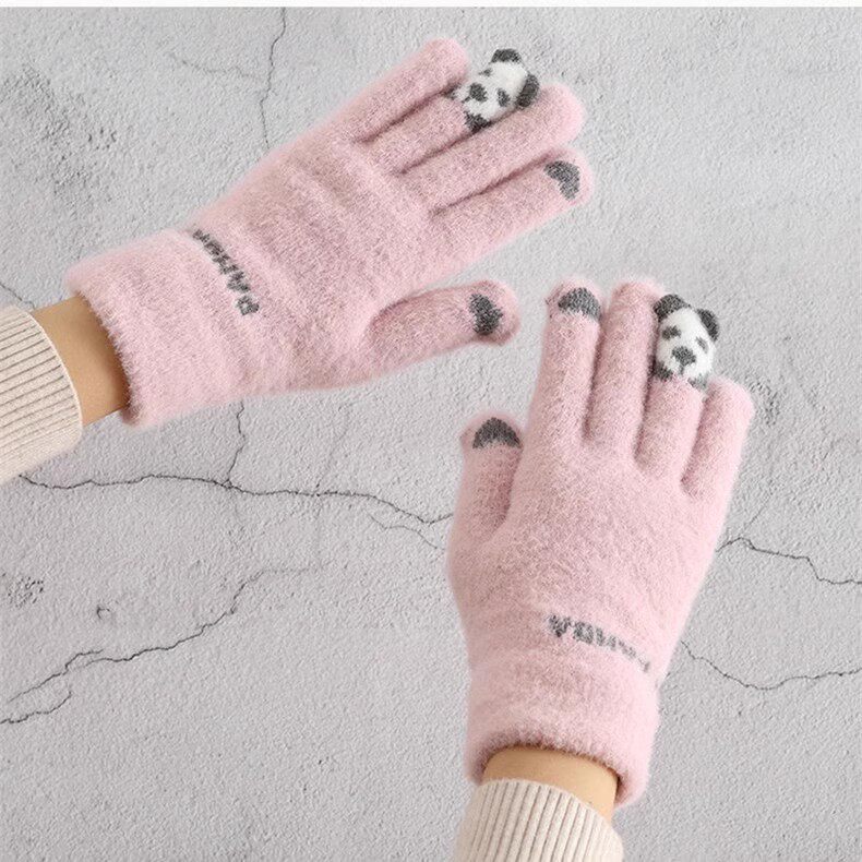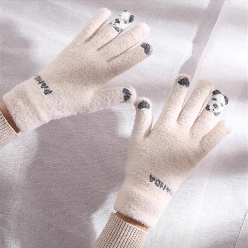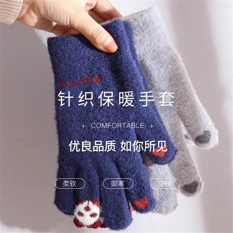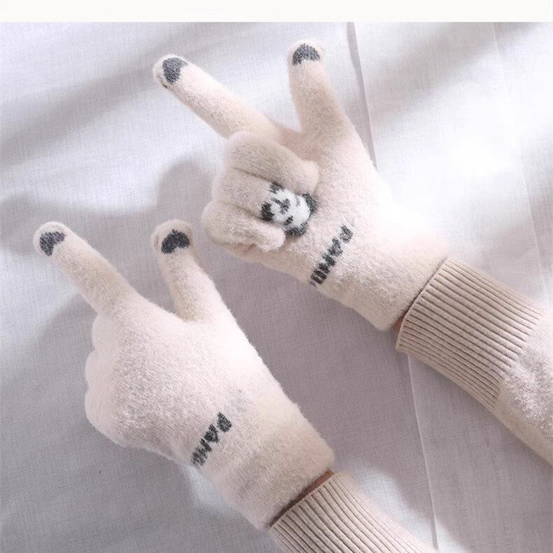 Шерстяные перчатки, зимний милый утепленный комплект