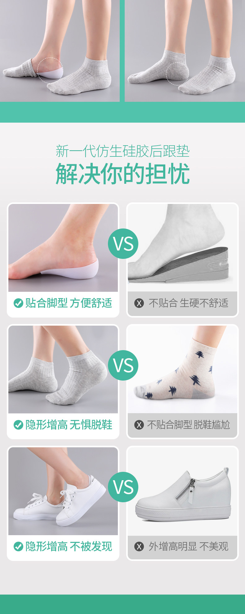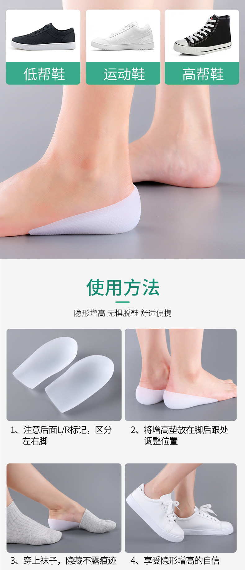 Силиконовые комфортные невидимые напяточники подходит для мужчин и женщин, стельки для увеличения роста
