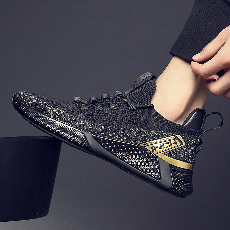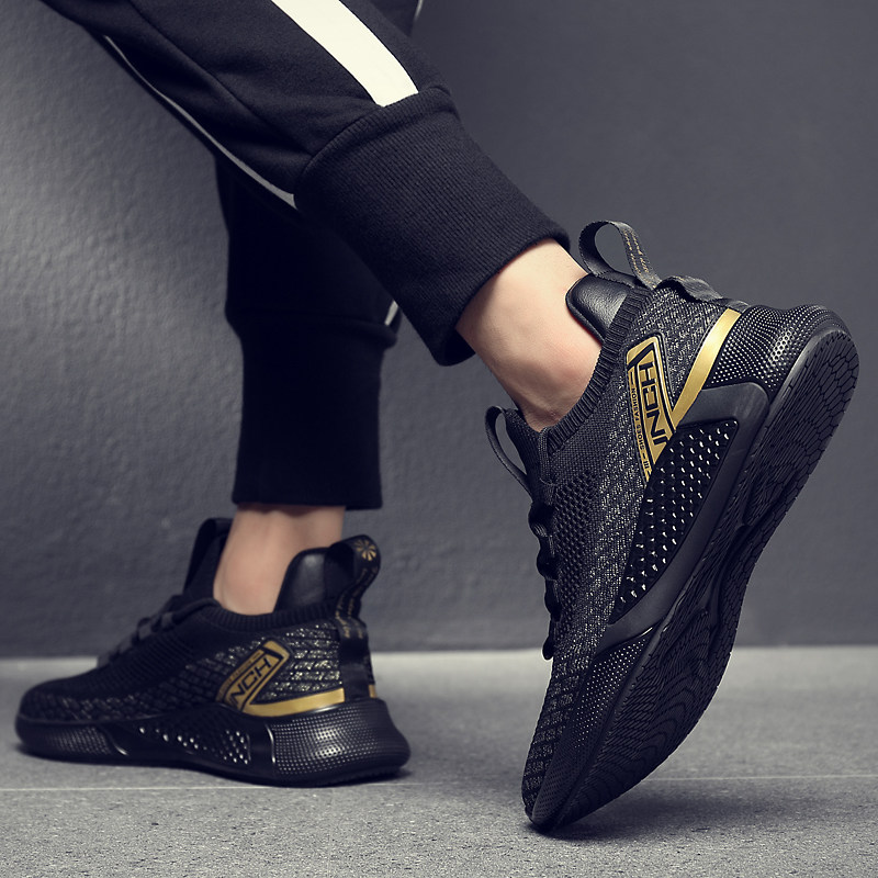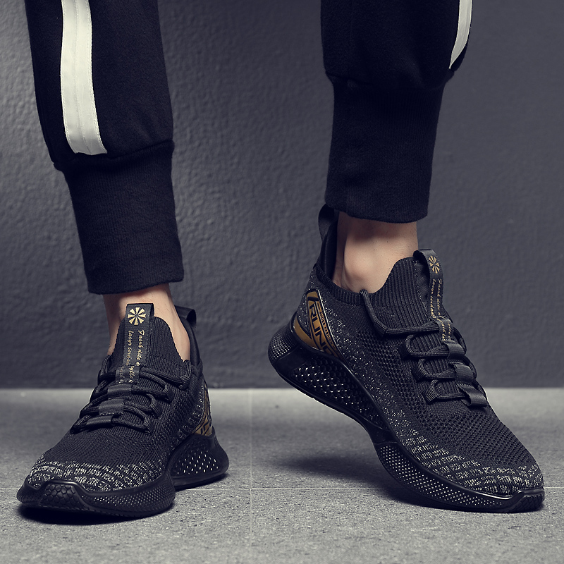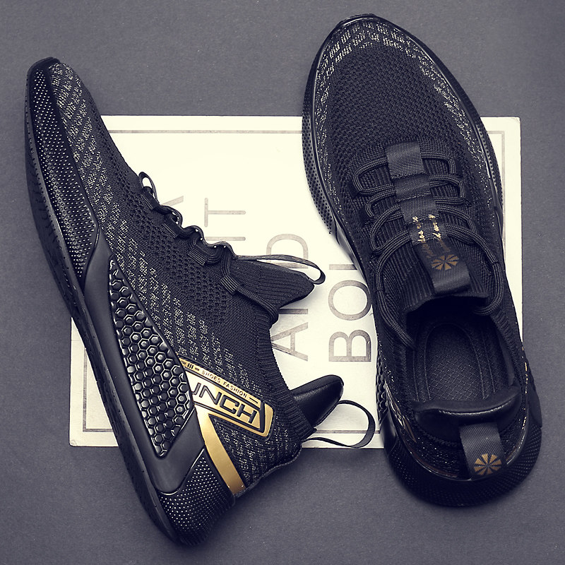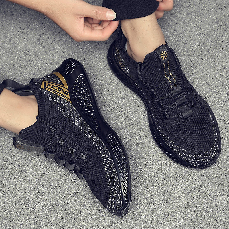 Мужская дышащая спортивная обувь, новинка 2024 года, сетчатая тканая мягкая подошва, мужская повседневная мужская обувь для бега, модная черная мягкая подошва