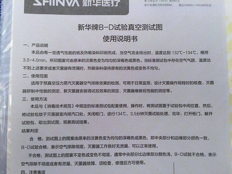 Марка Синьхуа B-D, тестовая вакуумная испытательная бумага/тестовая бумага BD/вакуумная стерилизация, тестовая бумага B-D, подлинная Синьхуа