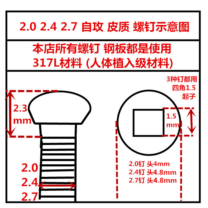 2,4/2.7 Диаметр винта диаметром 4,8 мм Диаметр резьбы 2,4/2,7 мм высота головки 2 ммС самостоятельной атакой Четыре угла 1,5