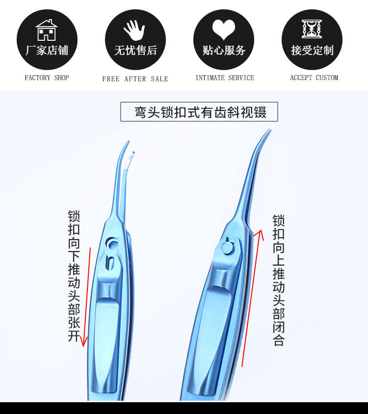 - Пинцеты для косоглазия с прямым фиксатором из титанового сплава