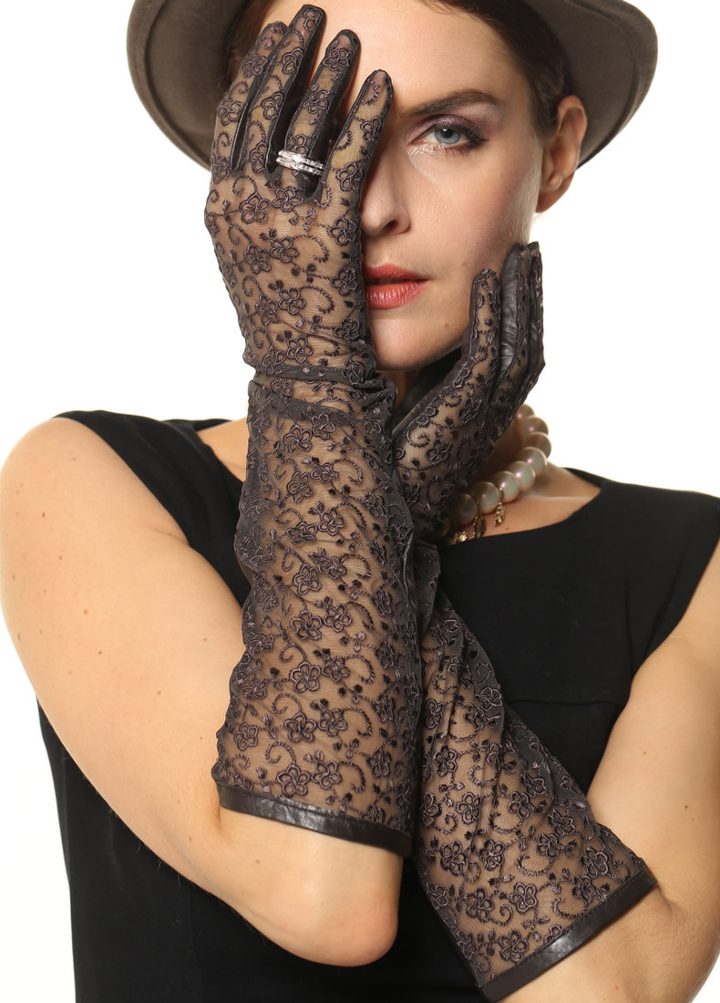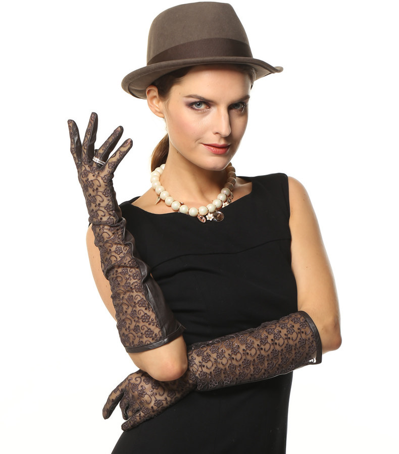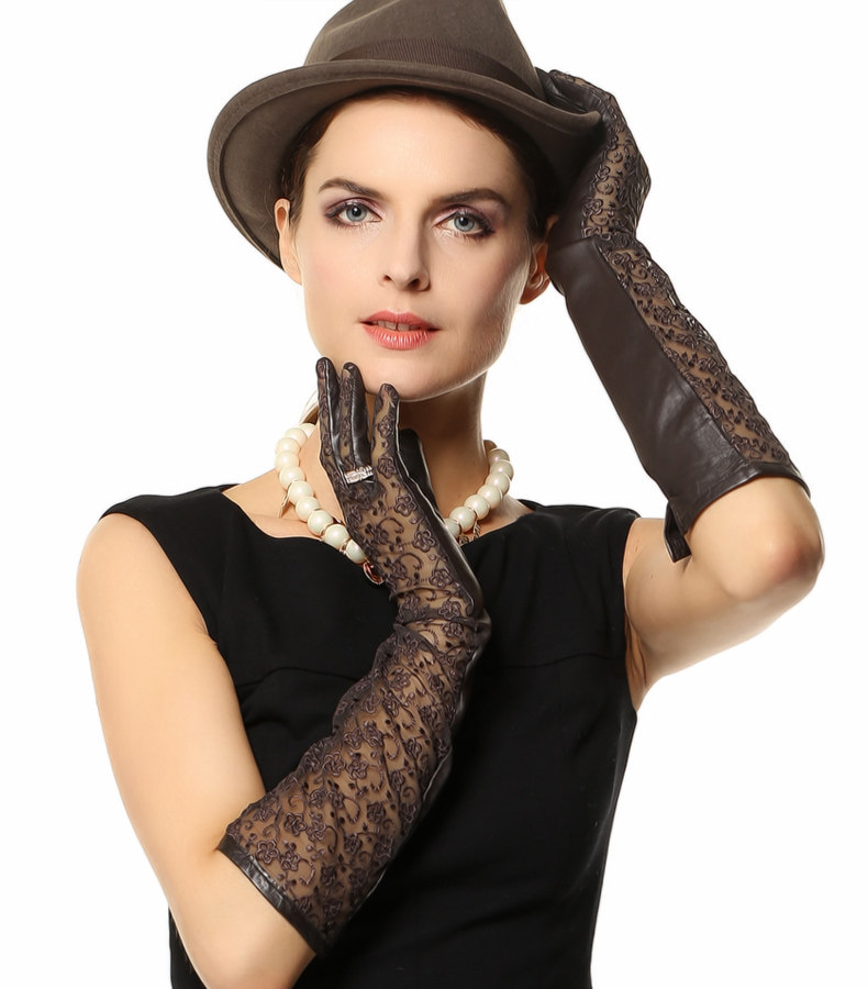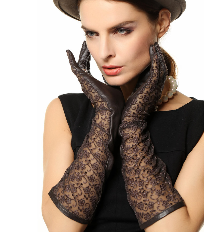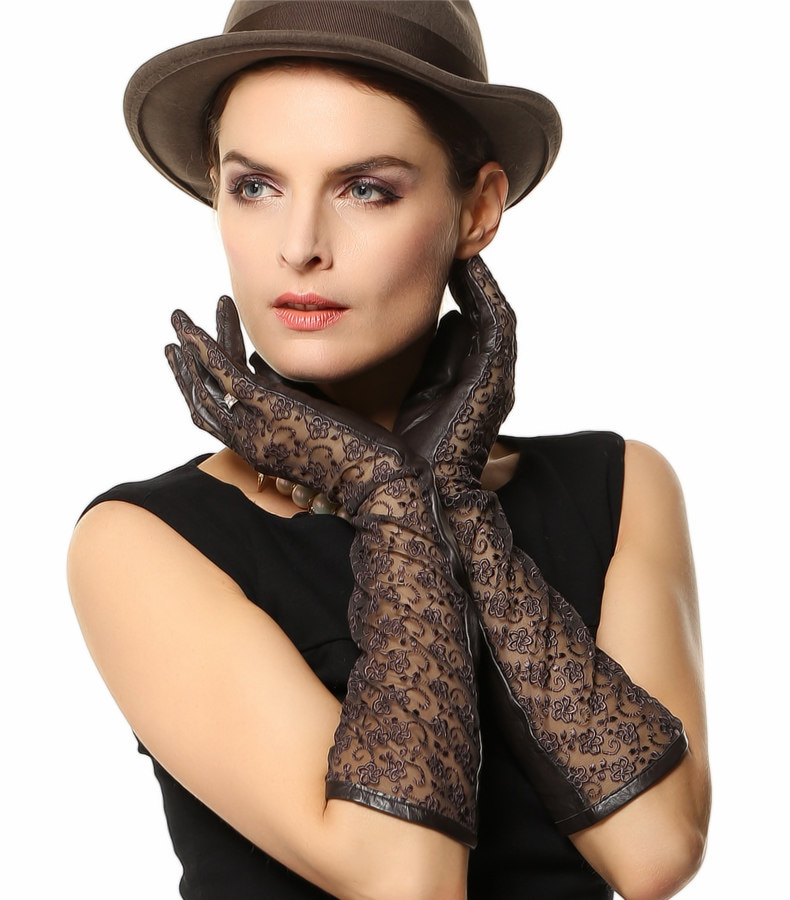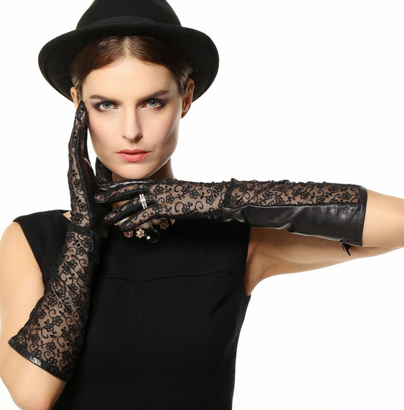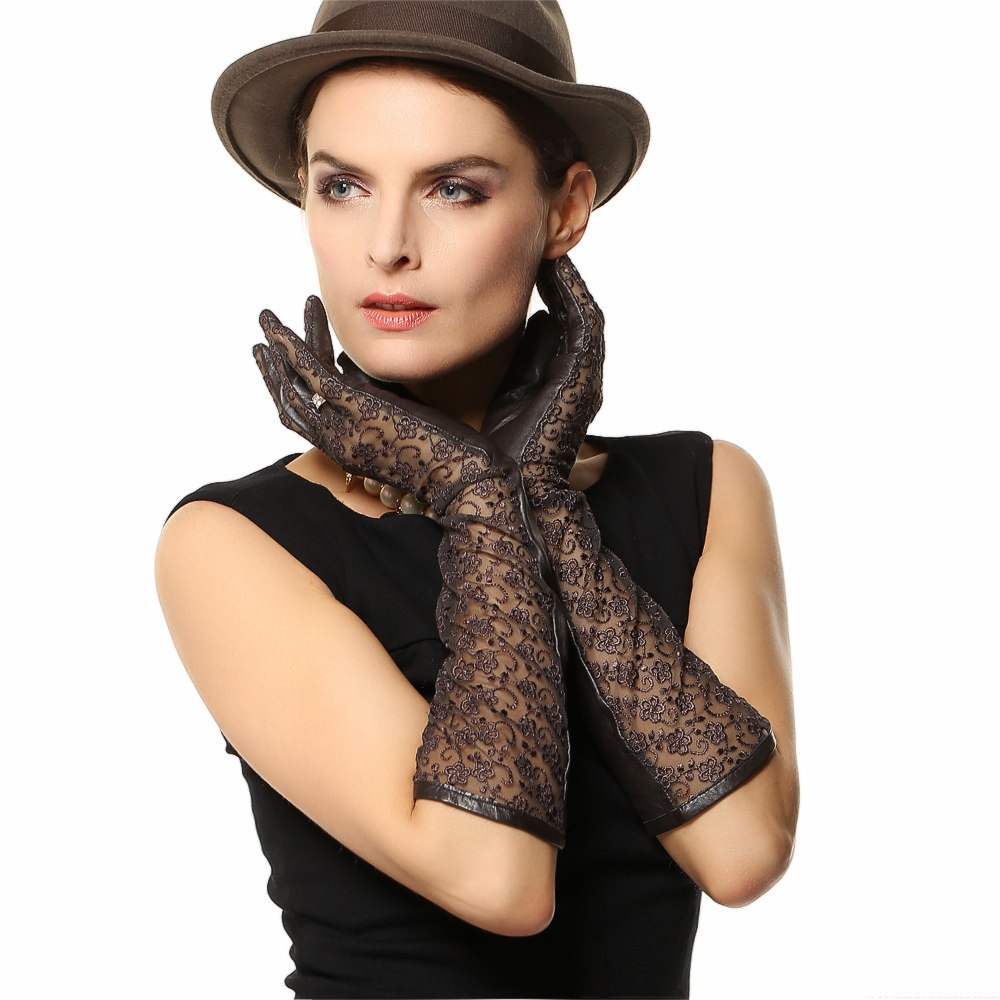 WARMEN Весенние модные перчатки, длинное кружевное платье, из натуральной кожи, средней длины, L112