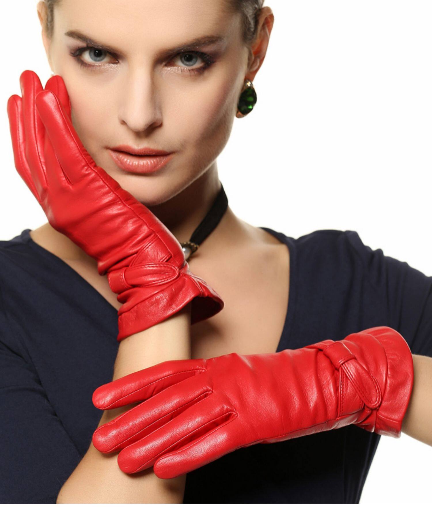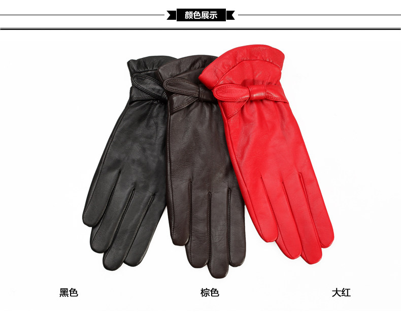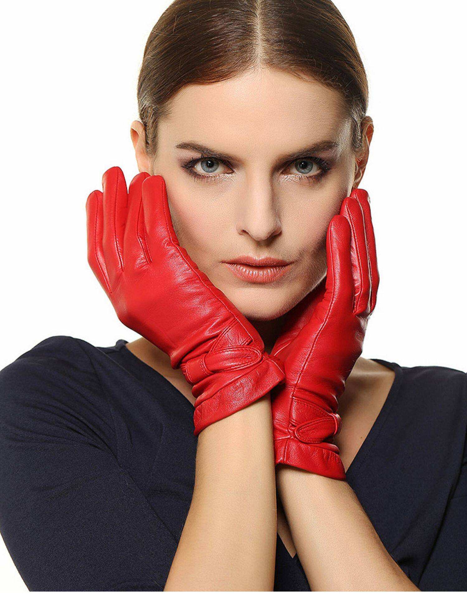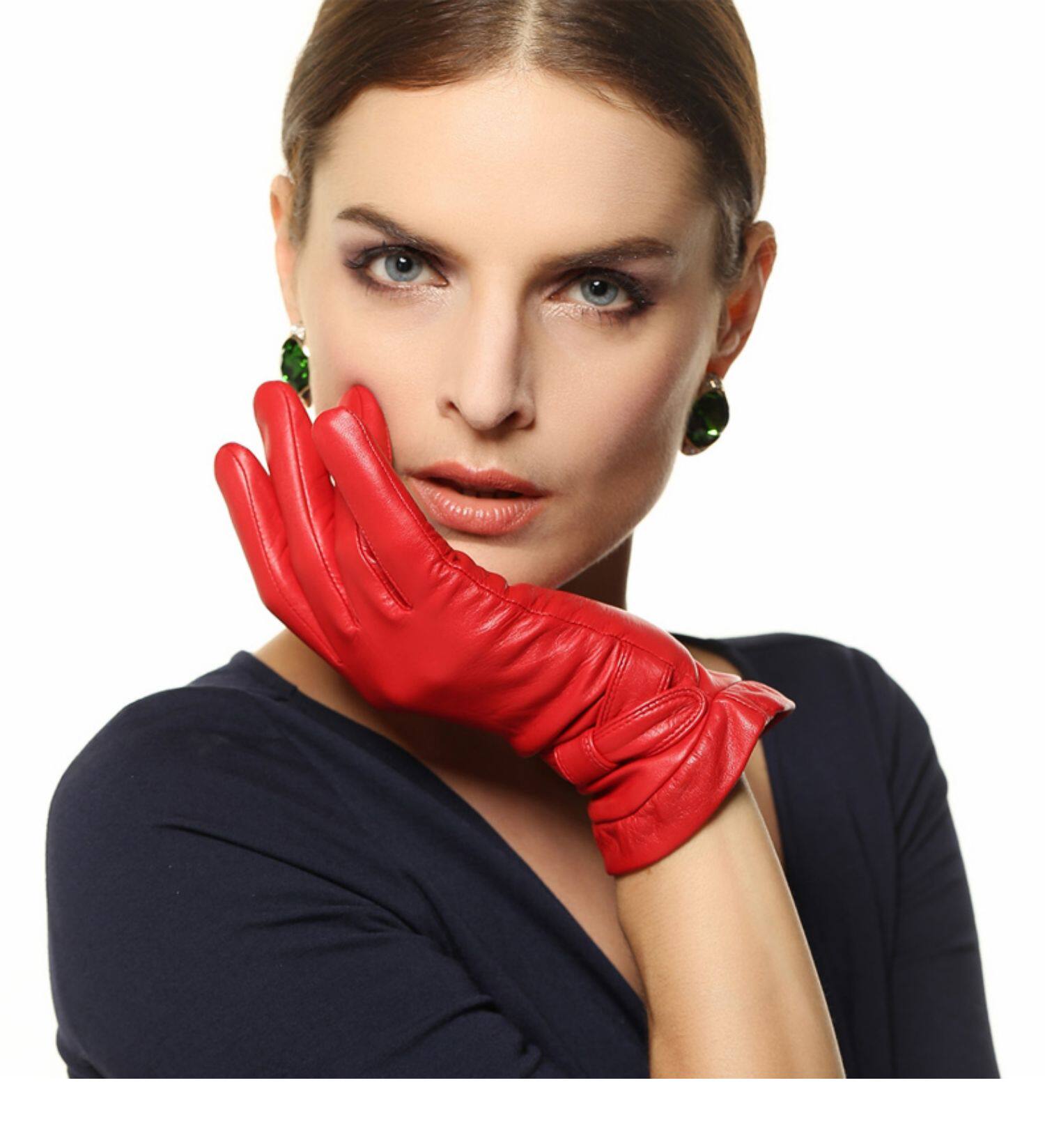 Перчатки, удерживающий тепло комплект, короткая клубника с бантиком из овчины, L114