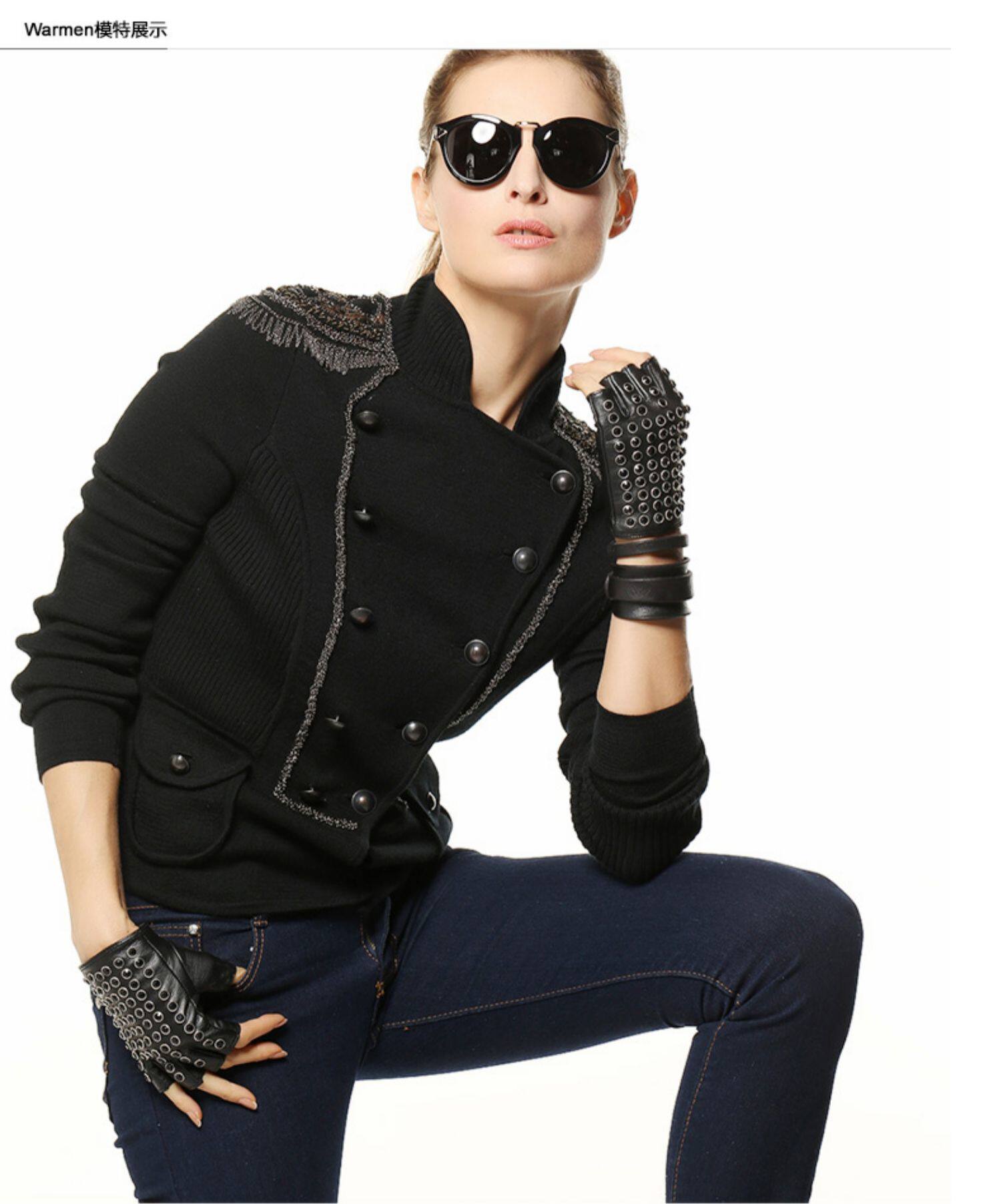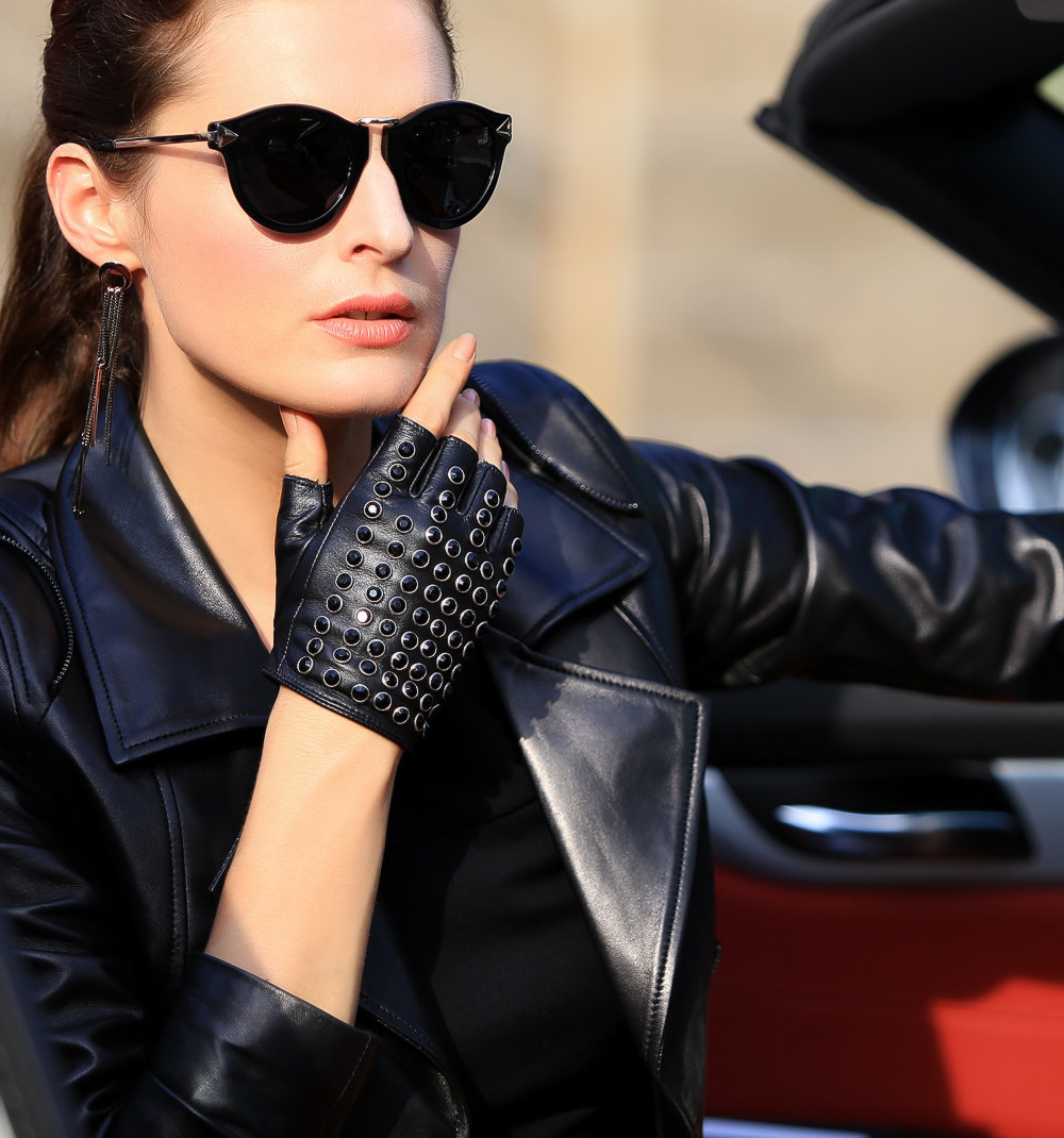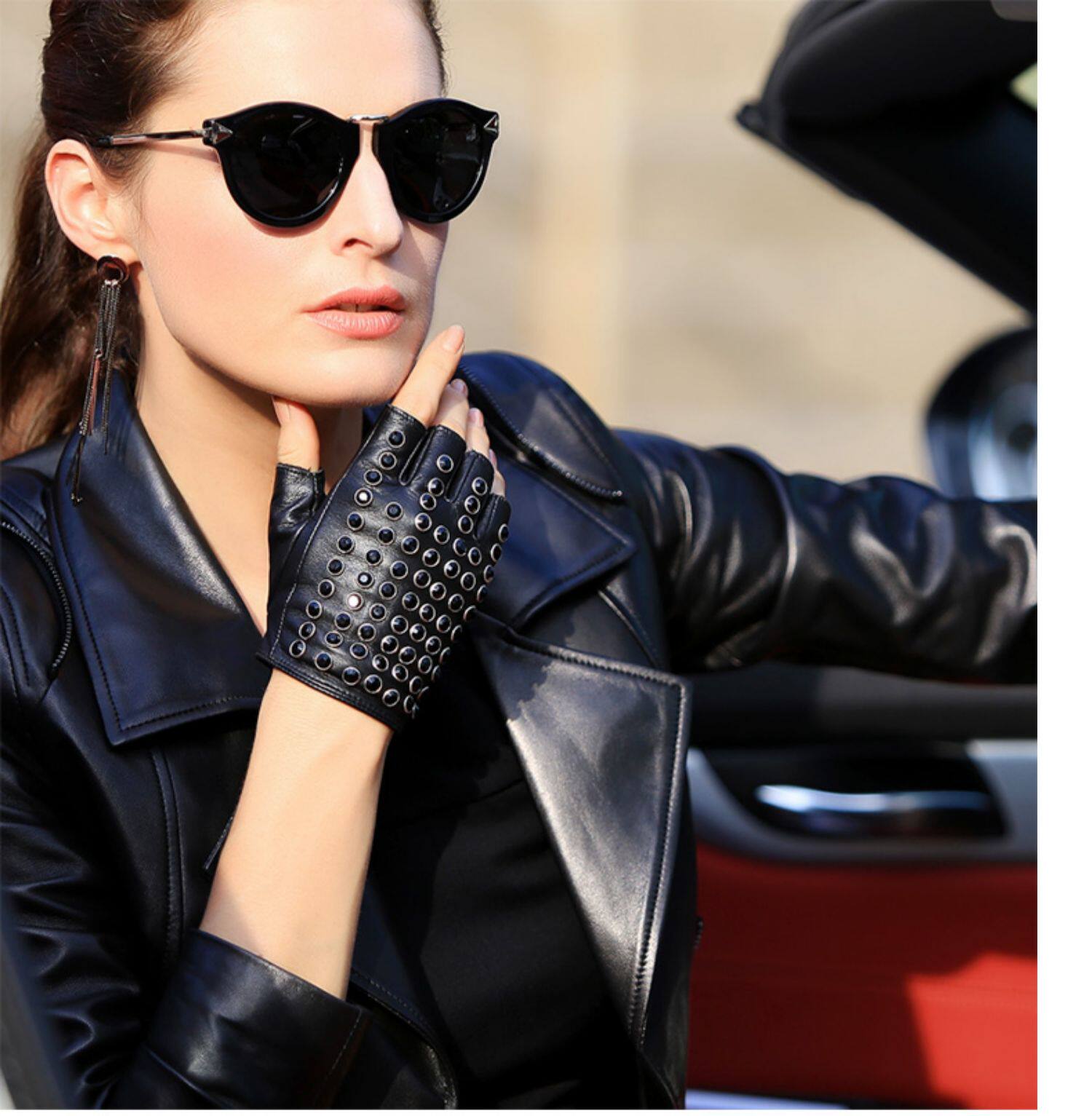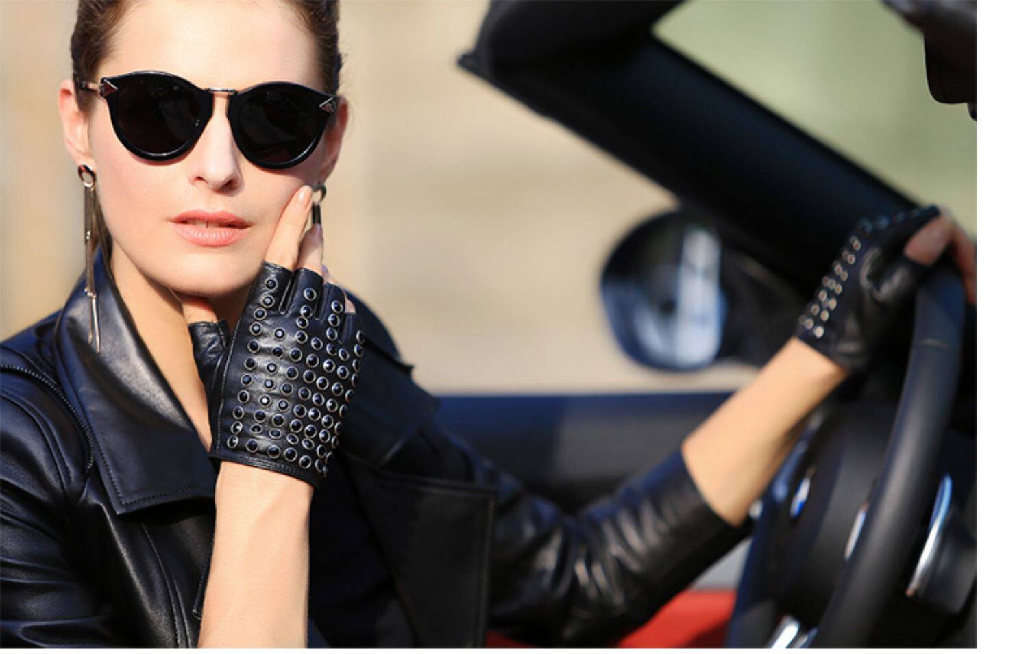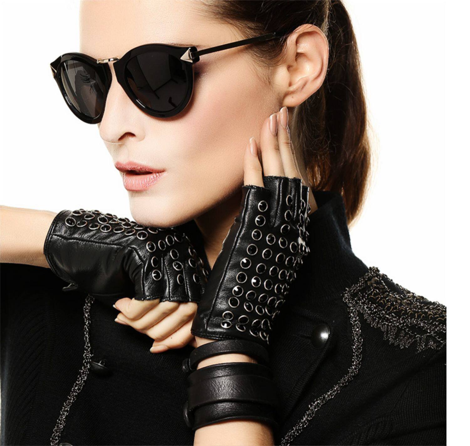 WARMEN Перчатки, короткий комплект, из натуральной кожи, без пальцев, в стиле панк, L116