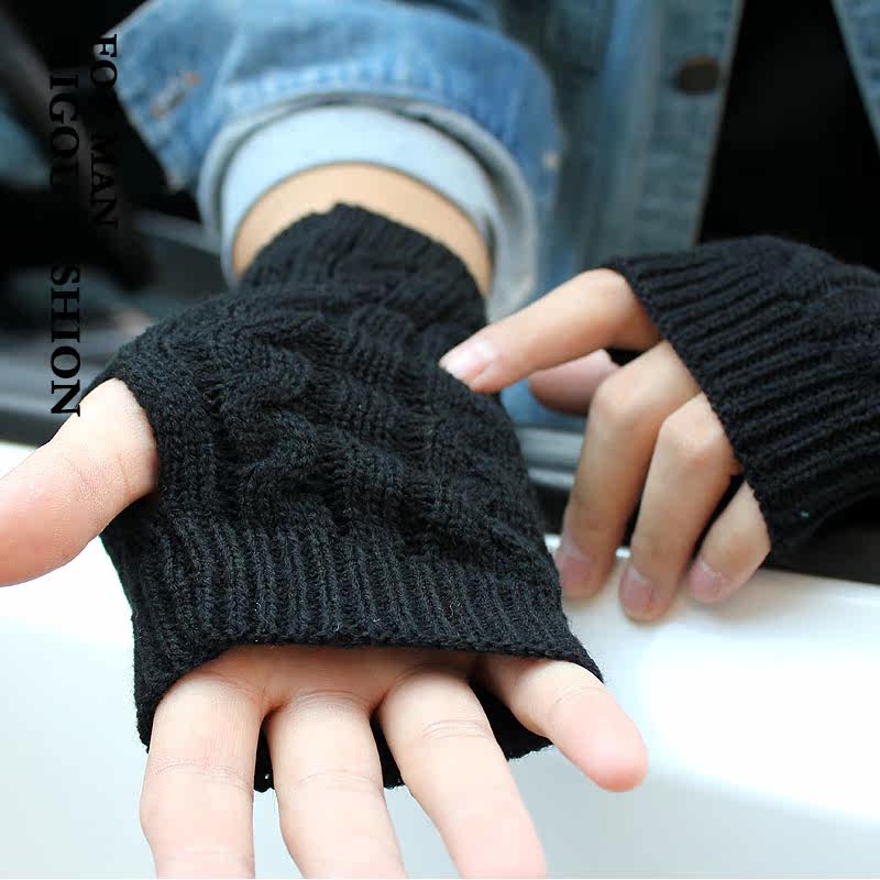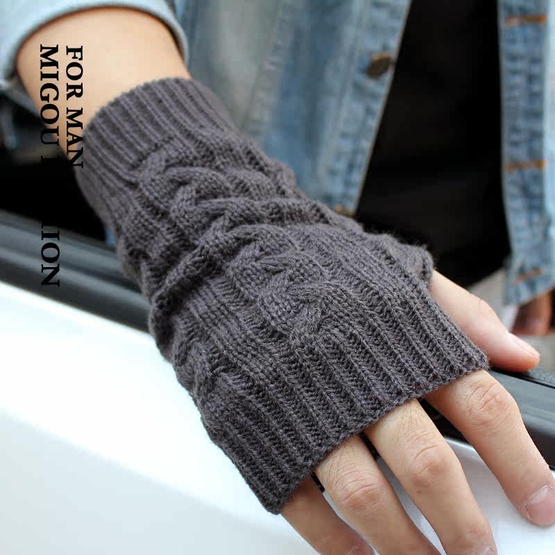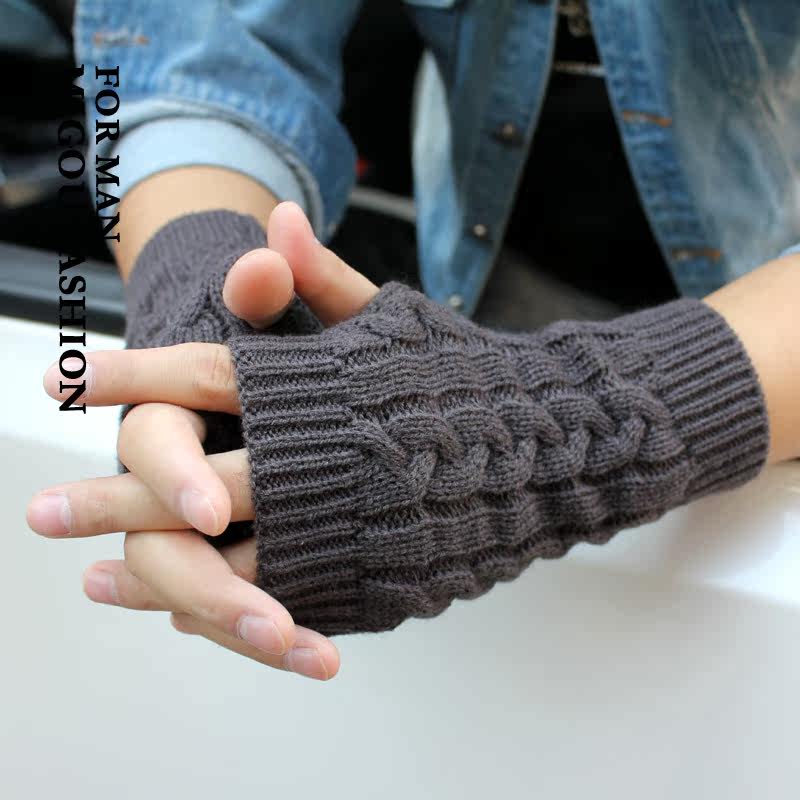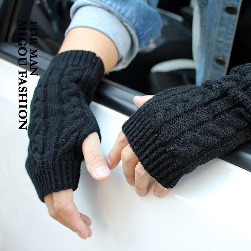 Мужские модные демисезонные короткие трикотажные перчатки с косичкой, без пальцев
