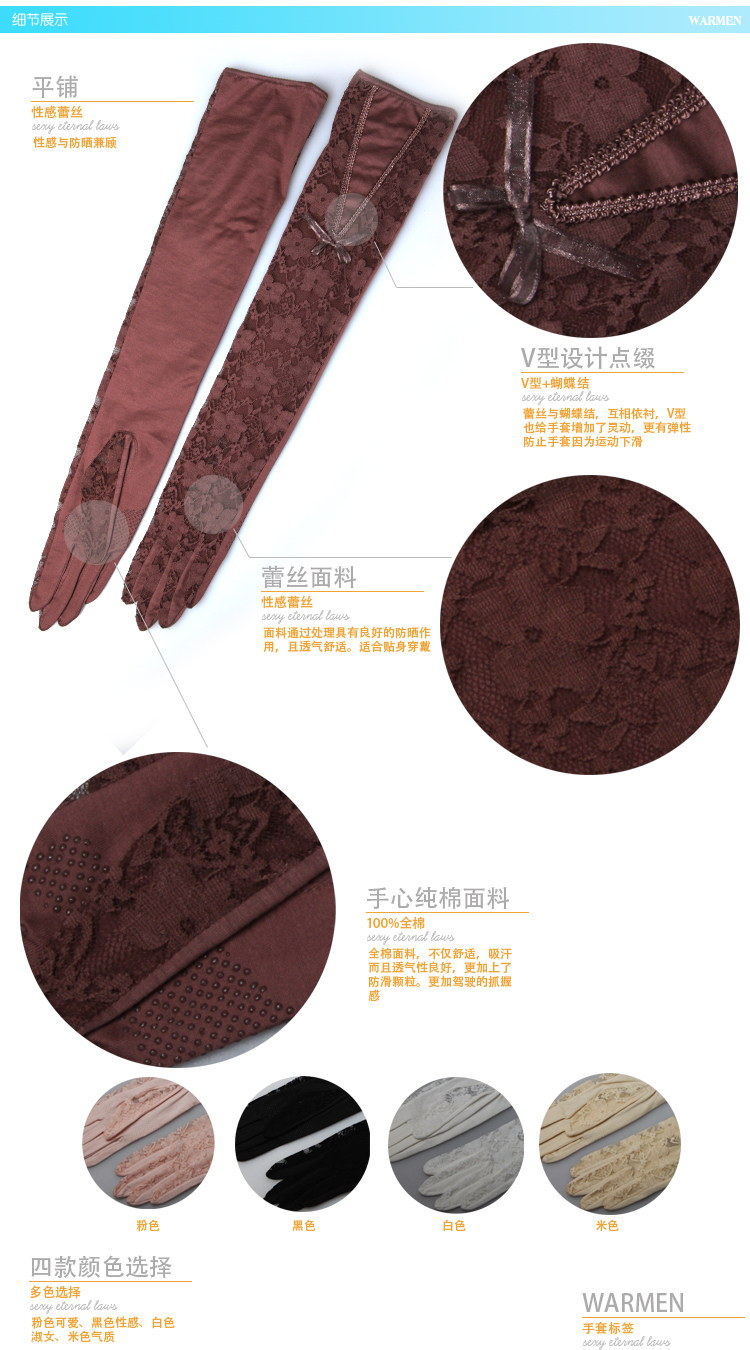 Летние перчатки, длинный кружевной комплект, защита от солнца, впитывают пот и запах