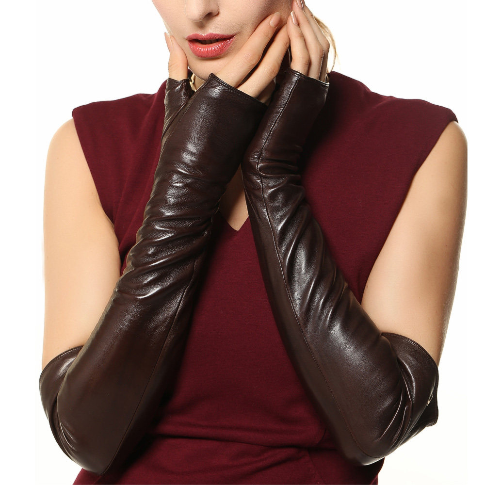 Перчатки, модный длинный утепленный комплект, средней длины, из натуральной кожи