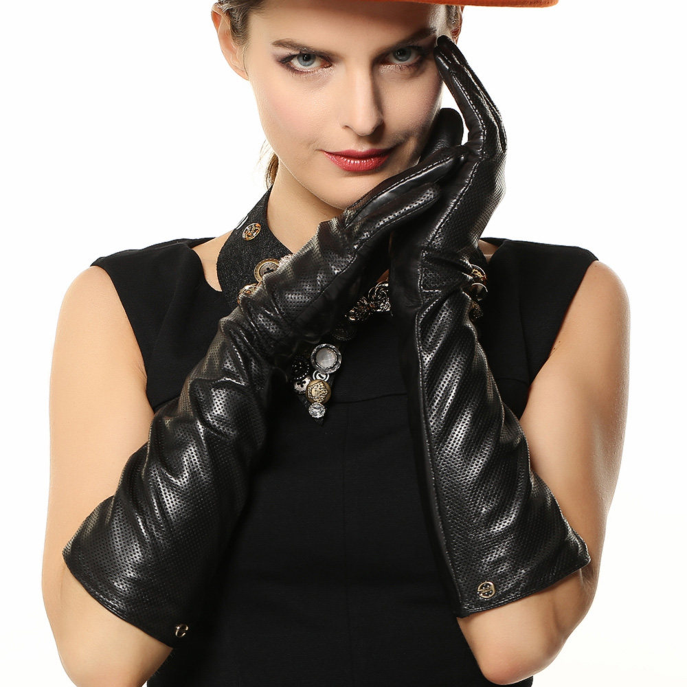 Зимние модные длинные удерживающие тепло ветрозащитные перчатки, из натуральной кожи
