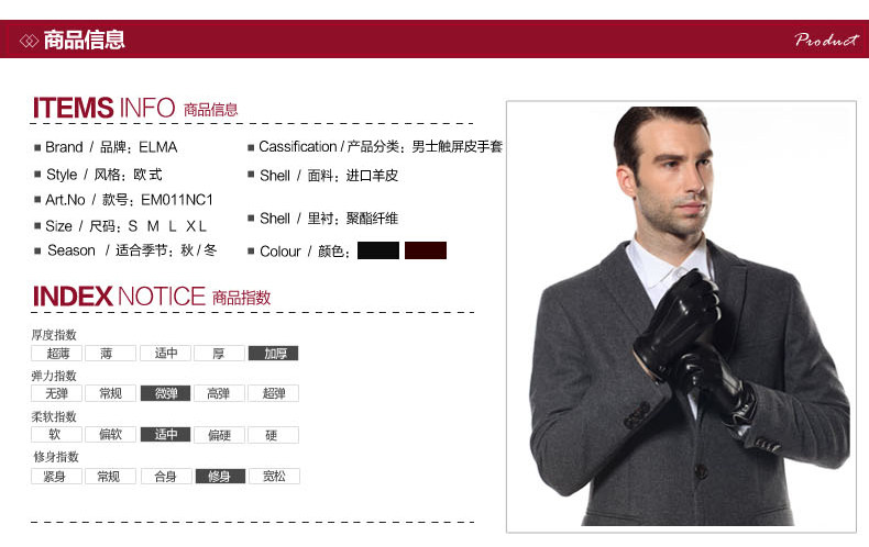 ELMA Мужские удерживающие тепло тонкие перчатки, из натуральной кожи