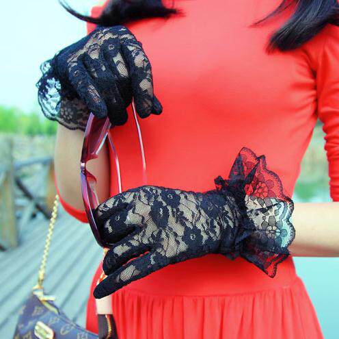 Летние тонкие кружевные перчатки, короткий модный кружевной комплект, кружевное платье, защита от солнца