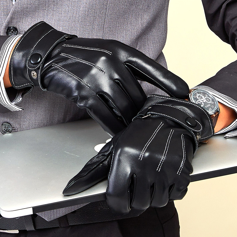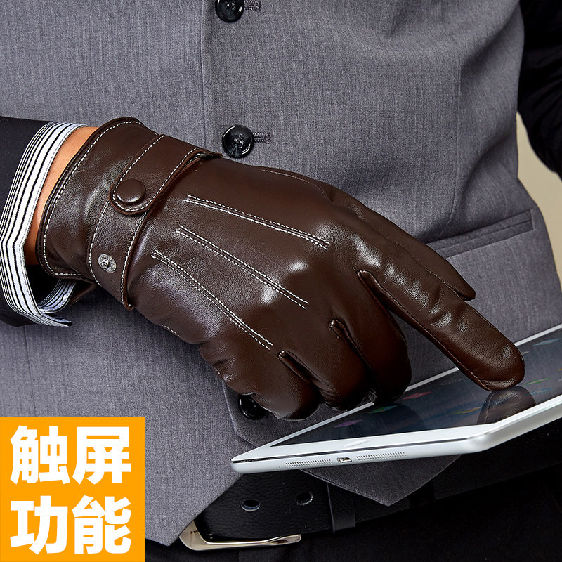 卓幻美冬 Мужские демисезонные удерживающие тепло флисовые перчатки, из натуральной кожи
