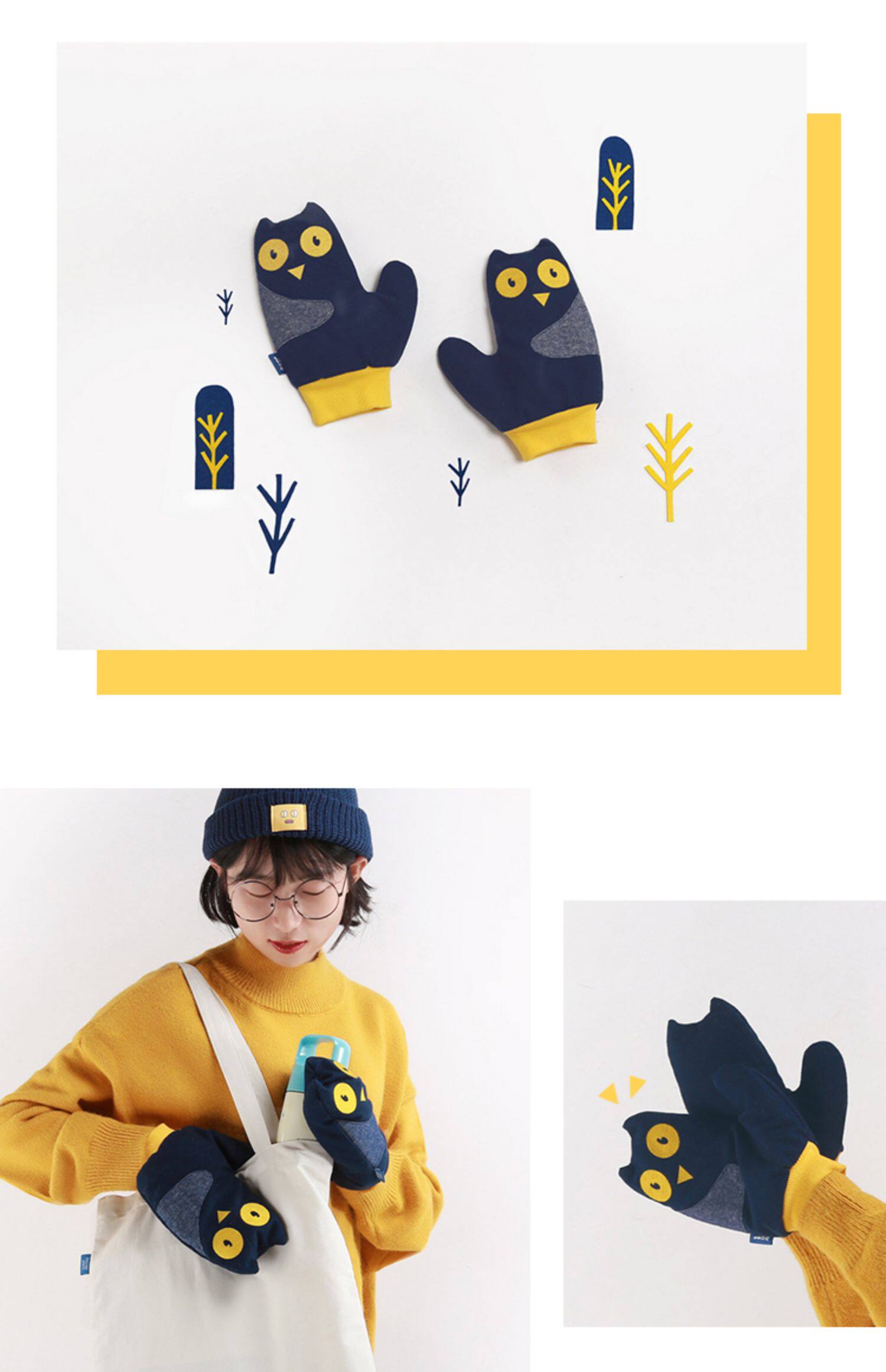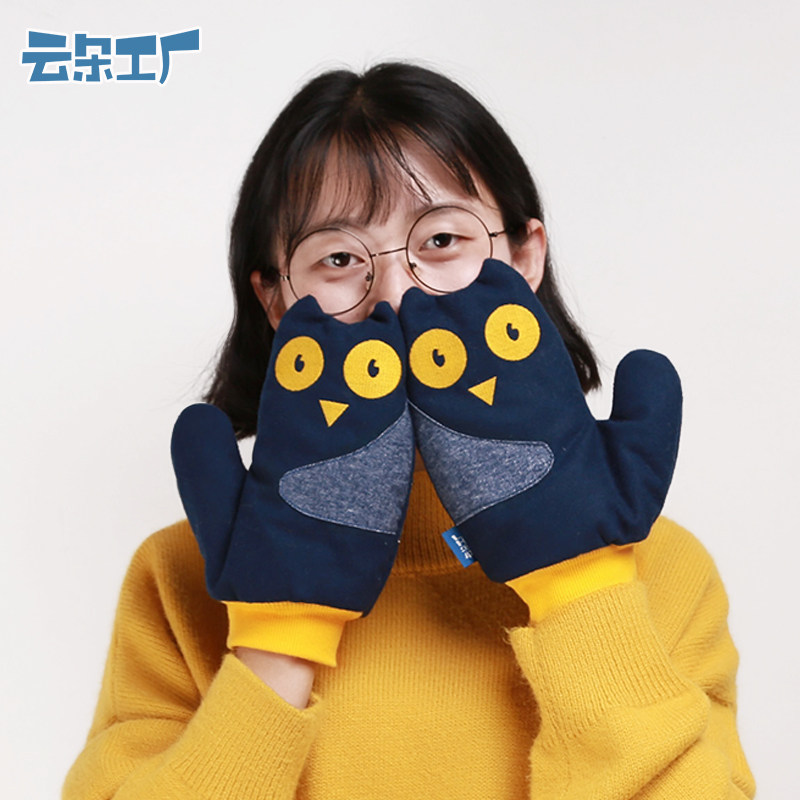 云朵工厂 Демисезонные утепленные бархатные перчатки, милый мультяшный комплект, в корейском стиле