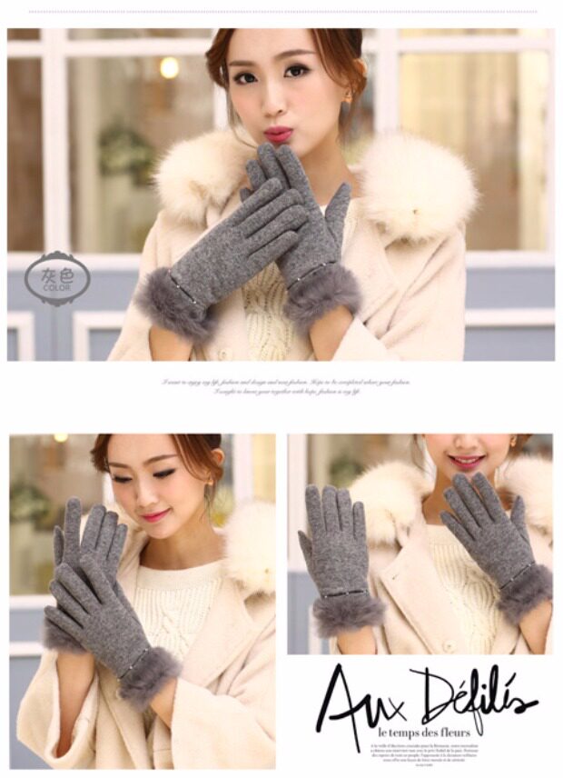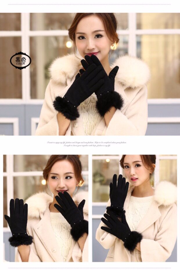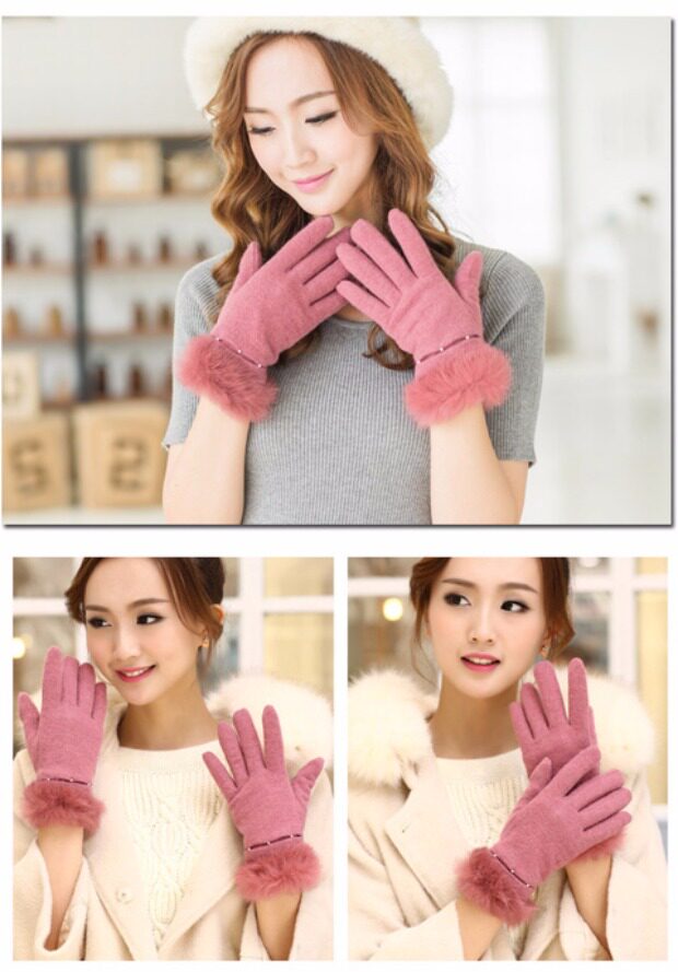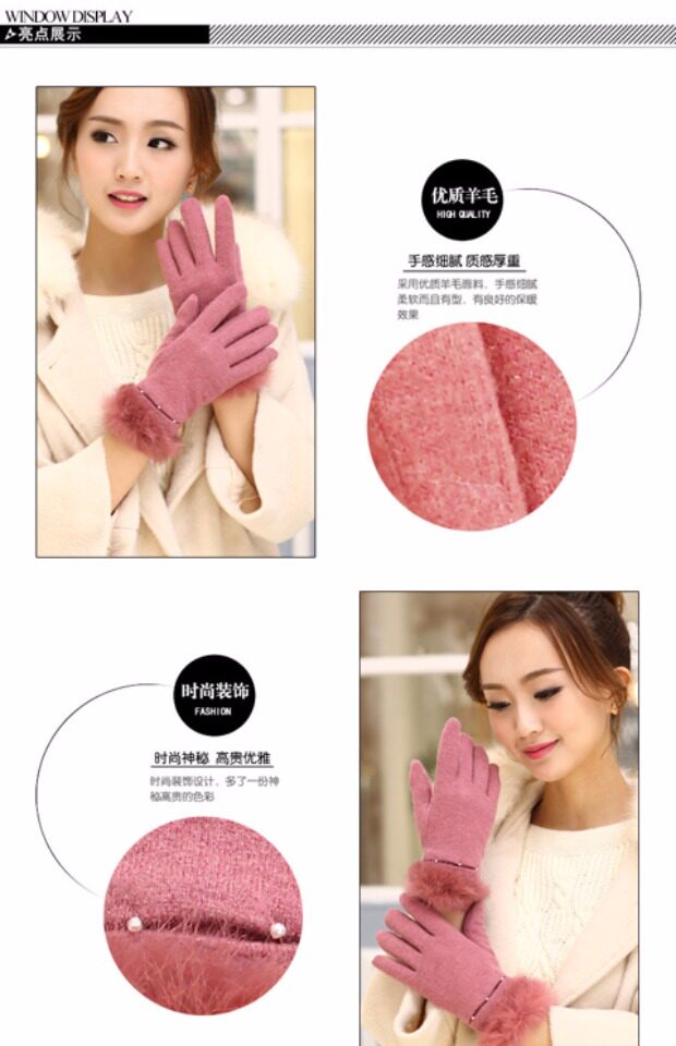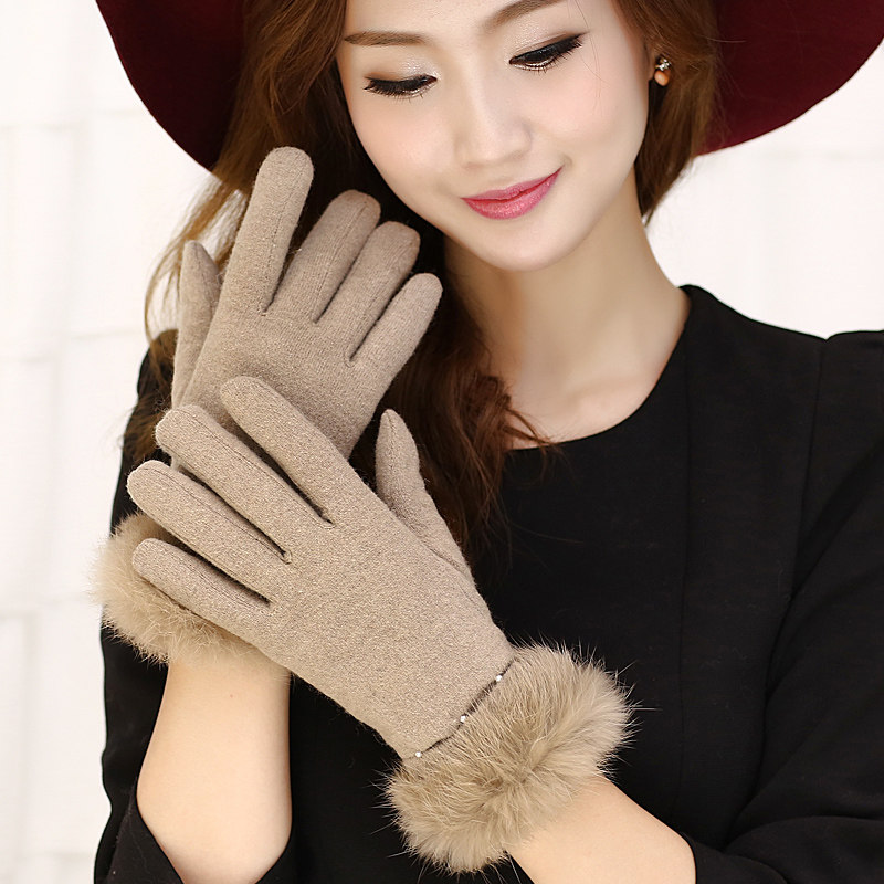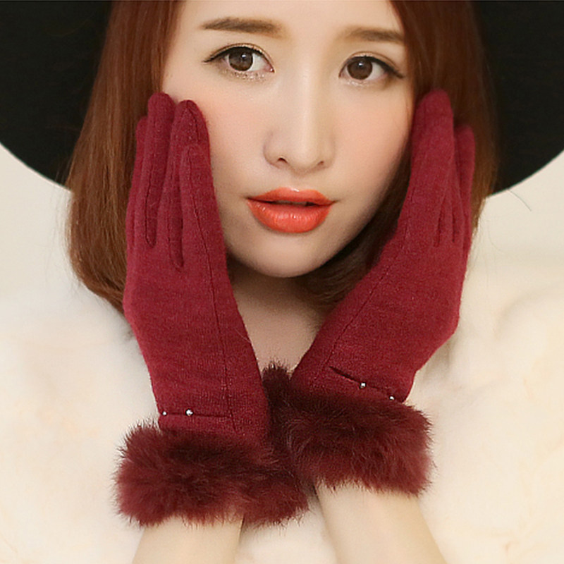 Шерстяные перчатки из жемчуга, демисезонный флисовый удерживающий тепло комплект, в корейском стиле