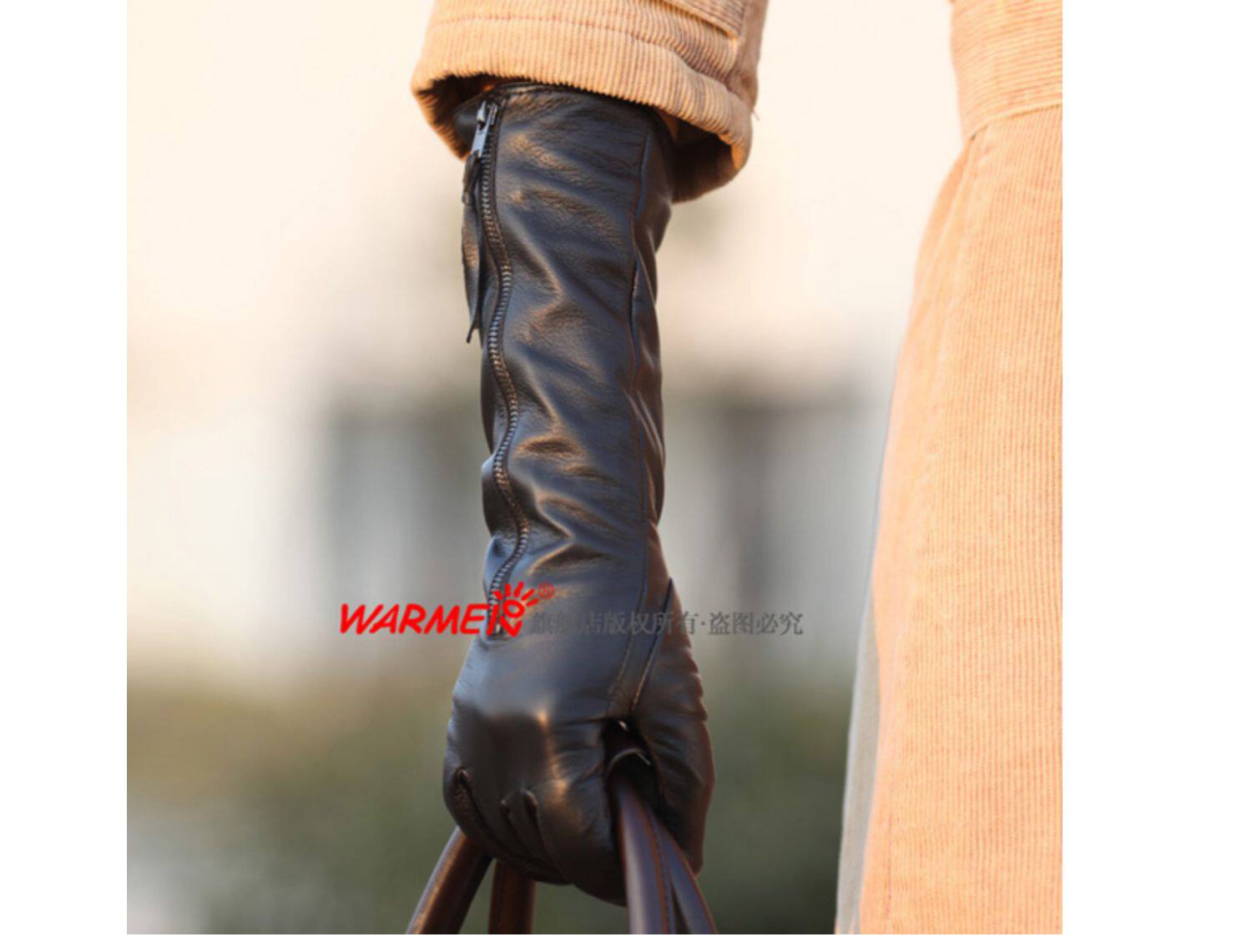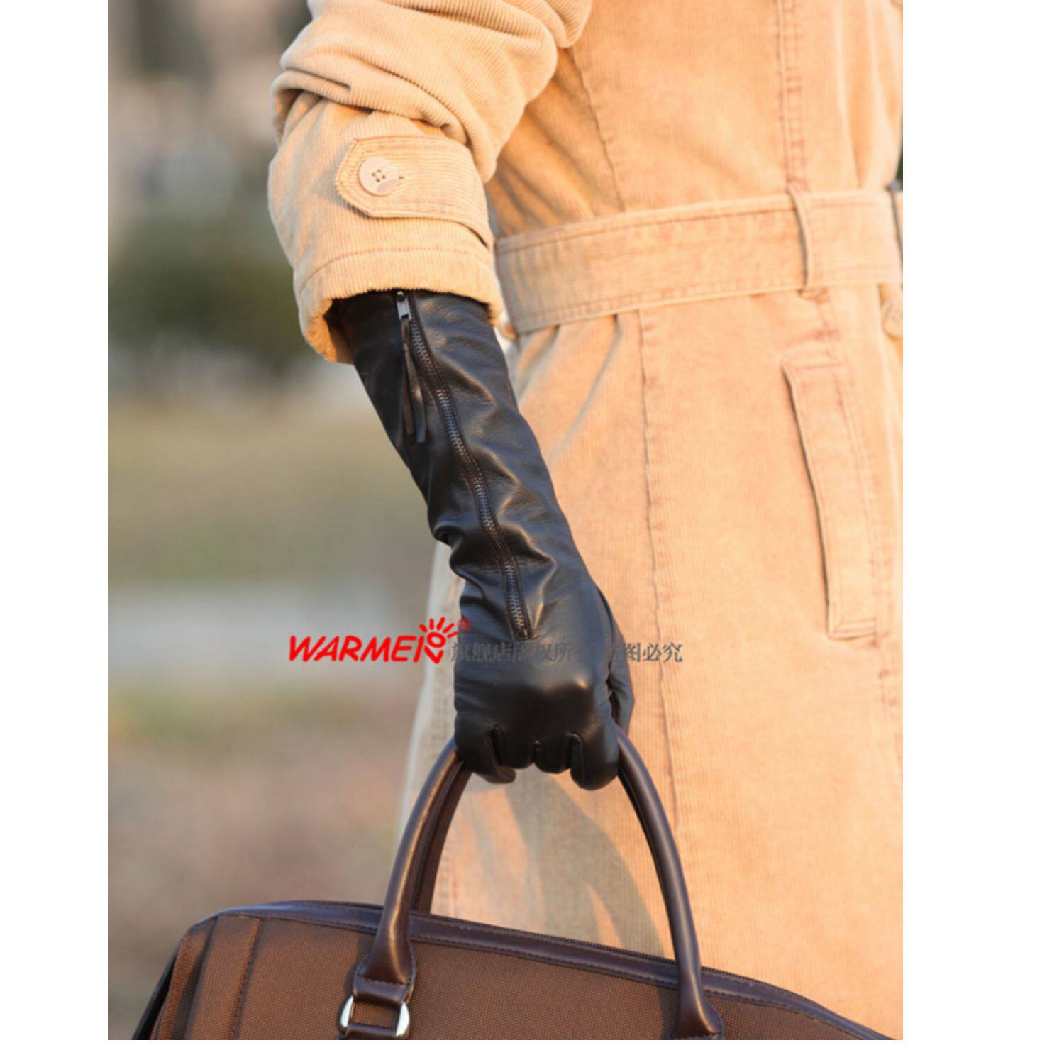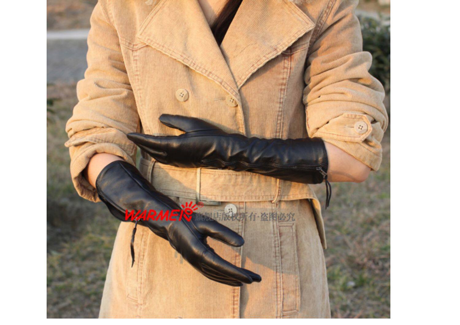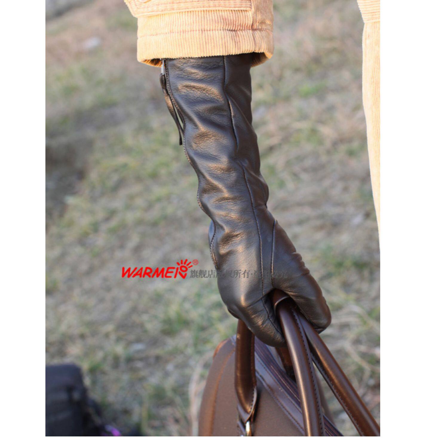 WARMEN Перчатки, зимний длинный модный удерживающий тепло комплект, из натуральной кожи, L031