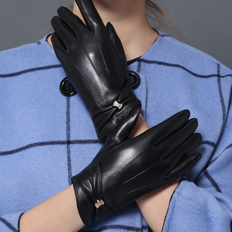卓幻美冬 Осенние демисезонные перчатки, утепленный комплект, из натуральной кожи