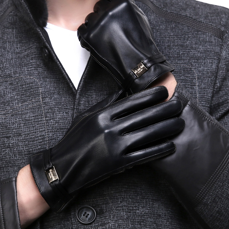 卓幻美冬 Мужские демисезонные удерживающие тепло перчатки, осенние, из натуральной кожи