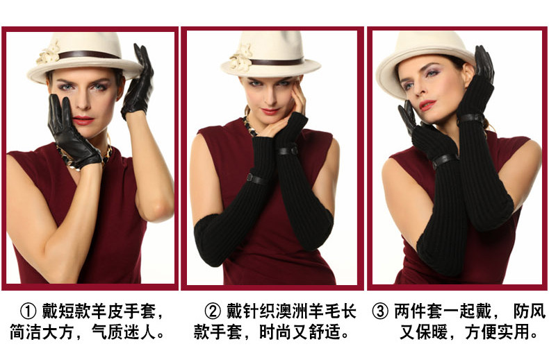 WARMEN Перчатки, удерживающий тепло кашемировый длинный комплект, из натуральной кожи, L137