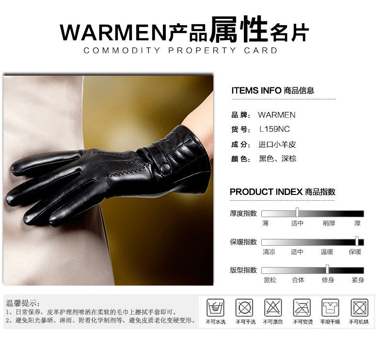 WARMEN Перчатки, утепленный удерживающий тепло комплект, в корейском стиле, из натуральной кожи, L159