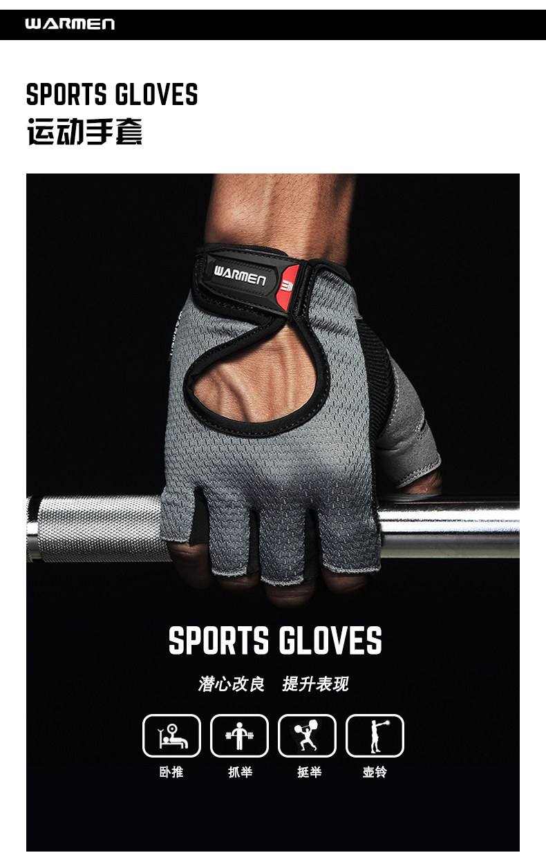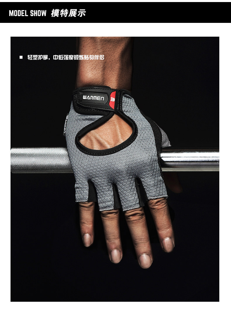 WARMEN Спортивные нескользящие перчатки для спортзала подходит для мужчин и женщин, динамичные гантели, велосипед для тренировок, без пальцев