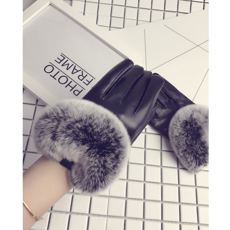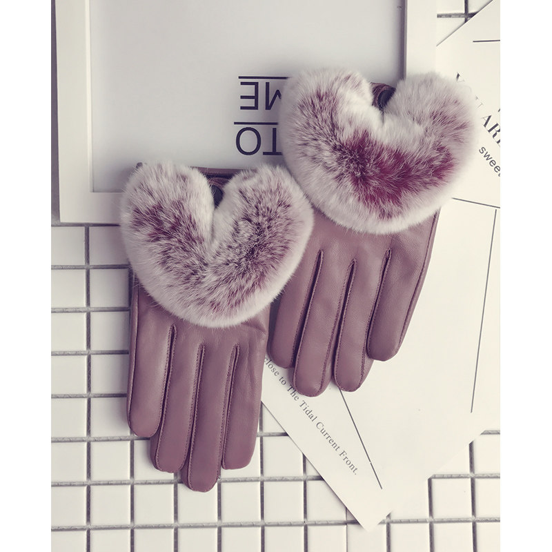 Перчатки, утепленный тонкий милый комплект, из натуральной кожи, в корейском стиле