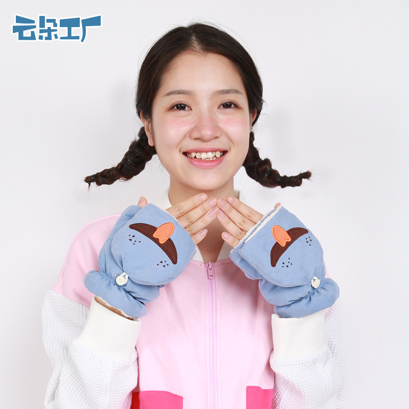云朵工厂 Зимние бархатные милые перчатки, комплект, увеличенная толщина, без пальцев