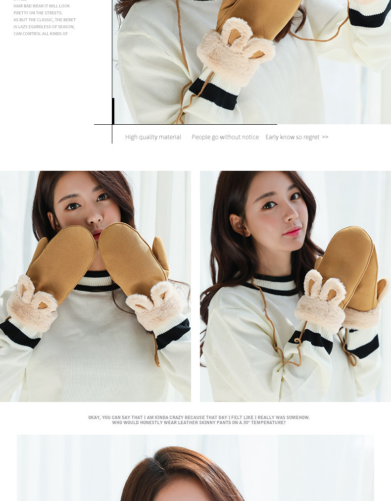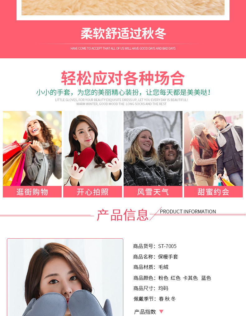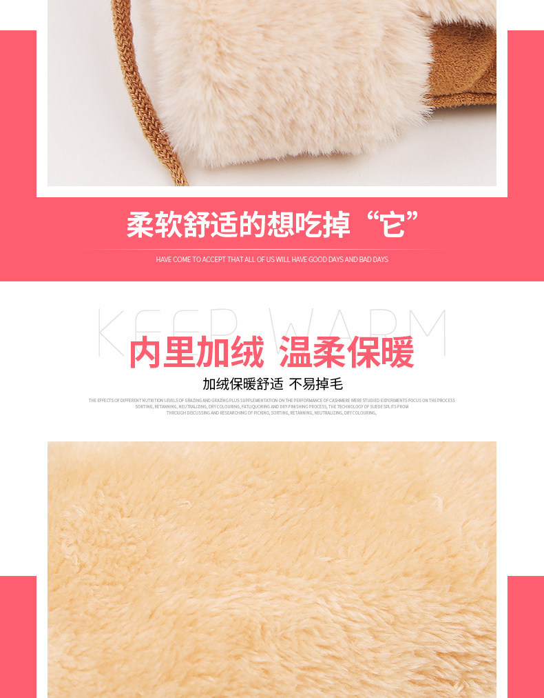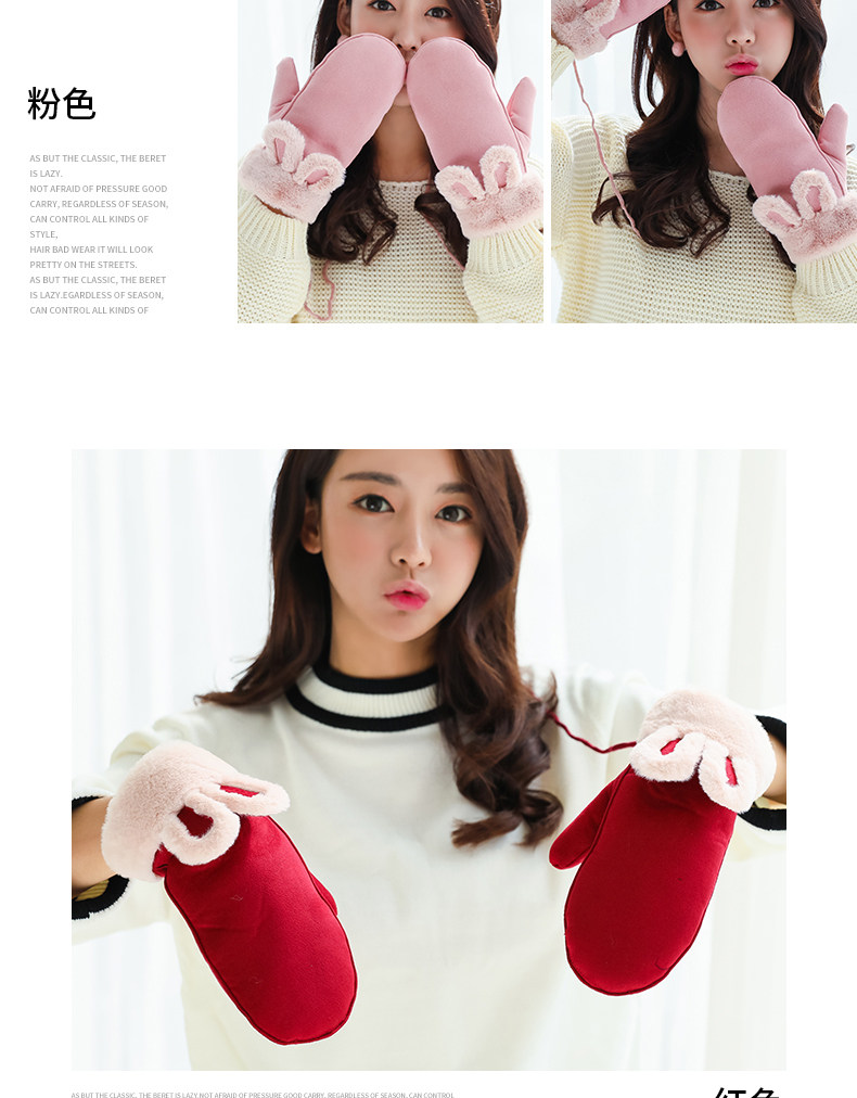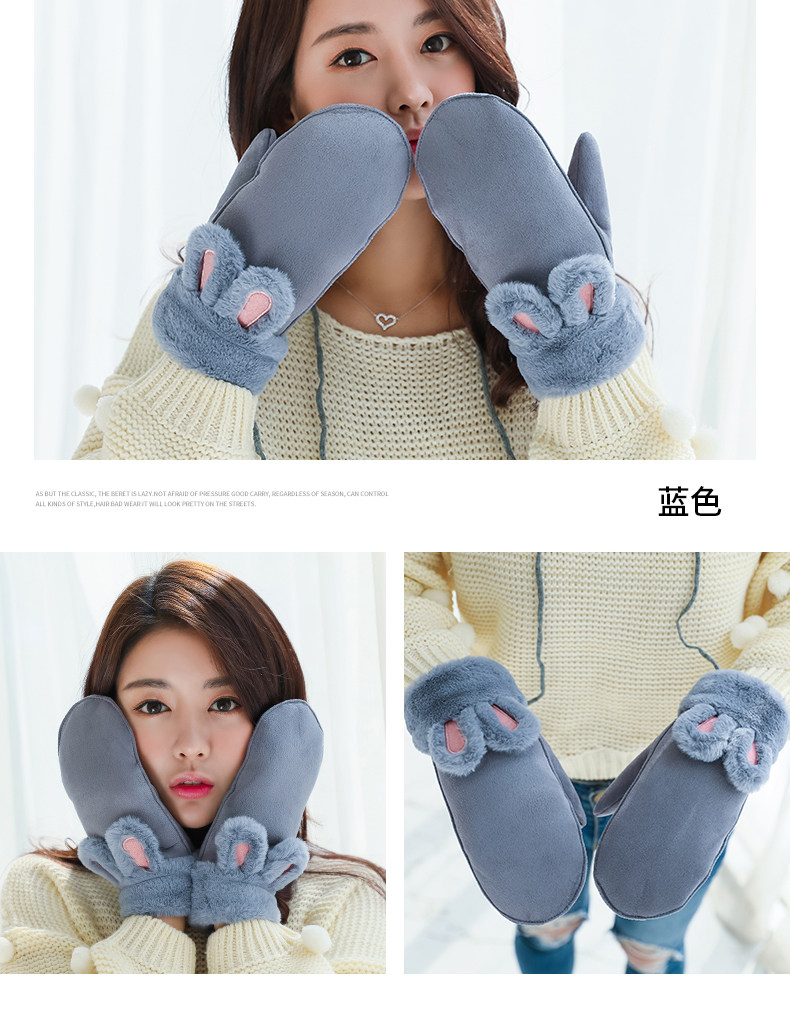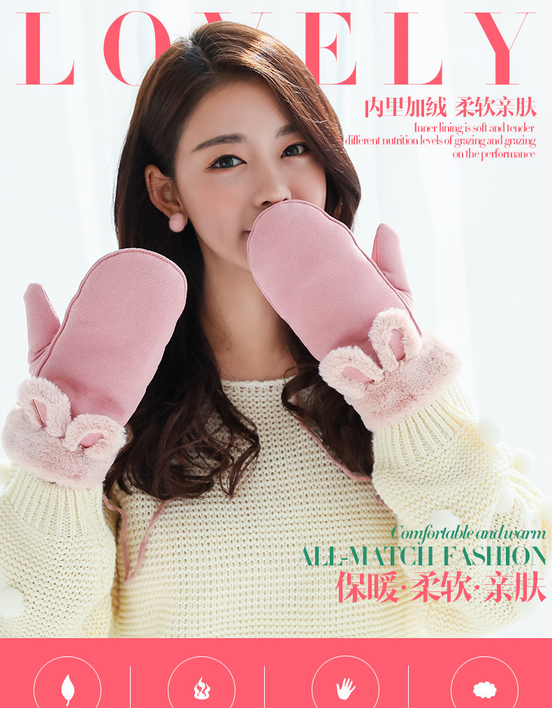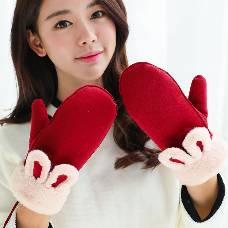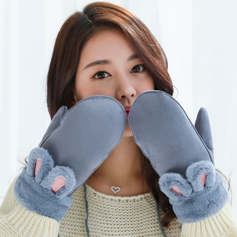 Бархатные перчатки, зимний милый ветрозащитный утепленный комплект, в корейском стиле