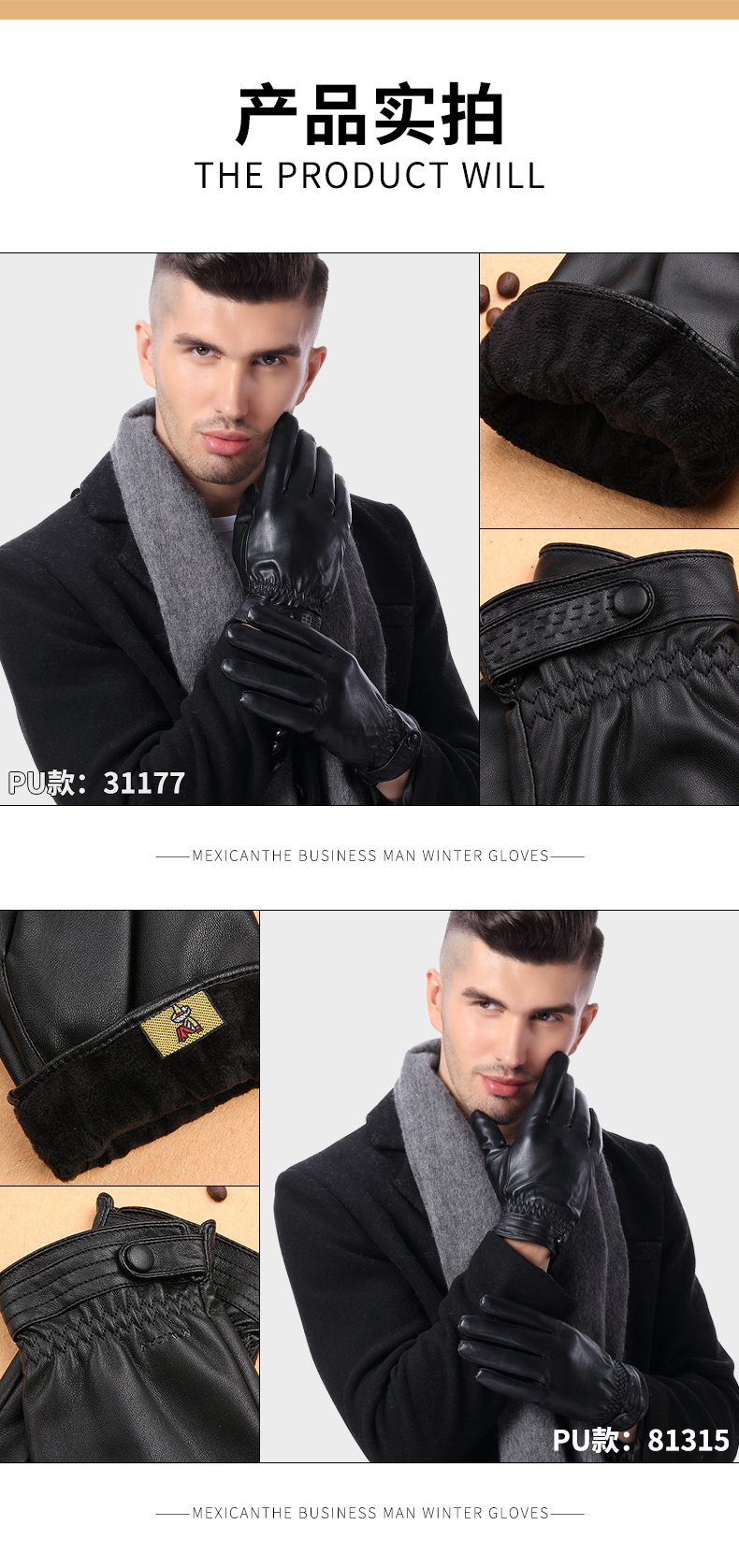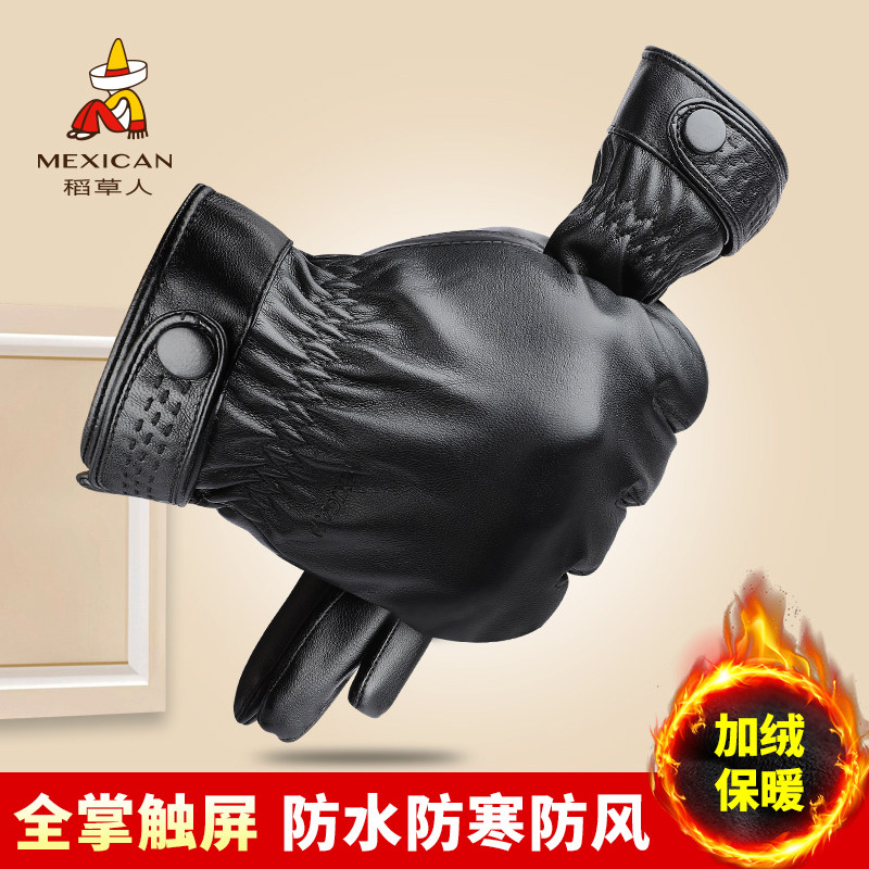 Мужские демисезонные ветрозащитные утепленные зимние удерживающие тепло водонепроницаемые перчатки, из натуральной кожи