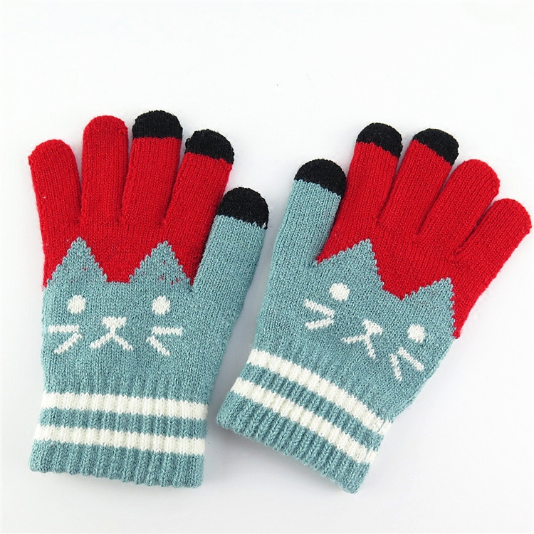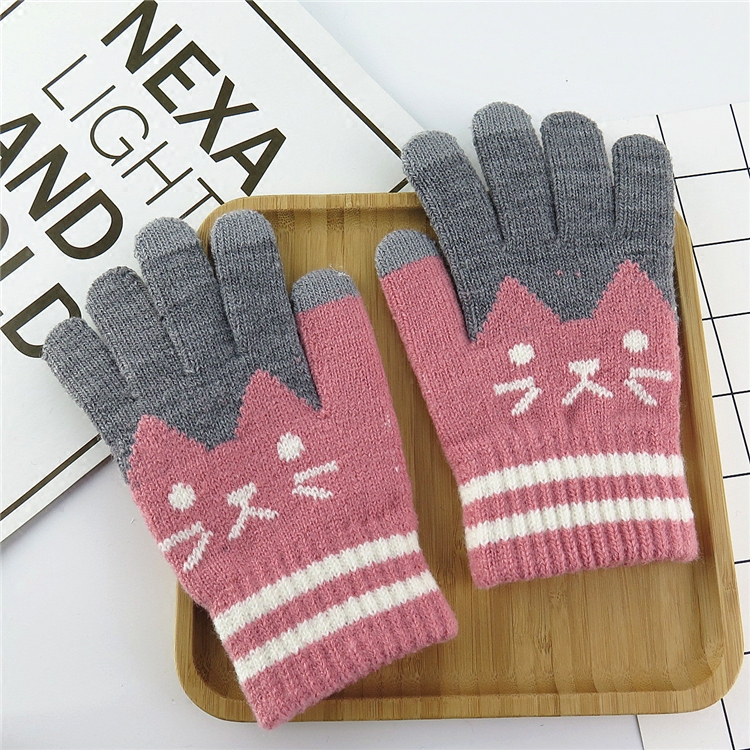 Демисезонные удерживающие тепло перчатки, милый флисовый трикотажный шерстяной зимний комплект для школьников, в корейском стиле