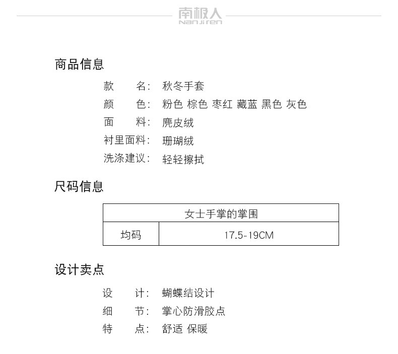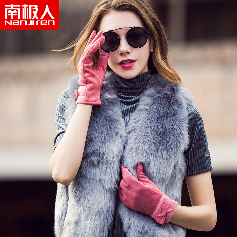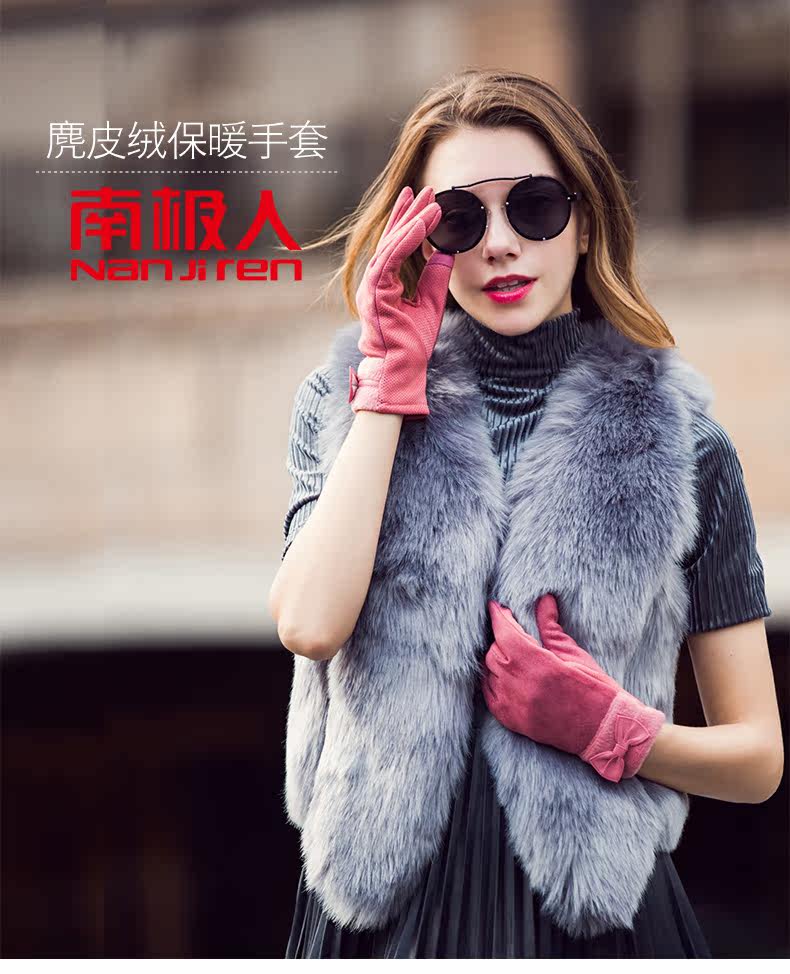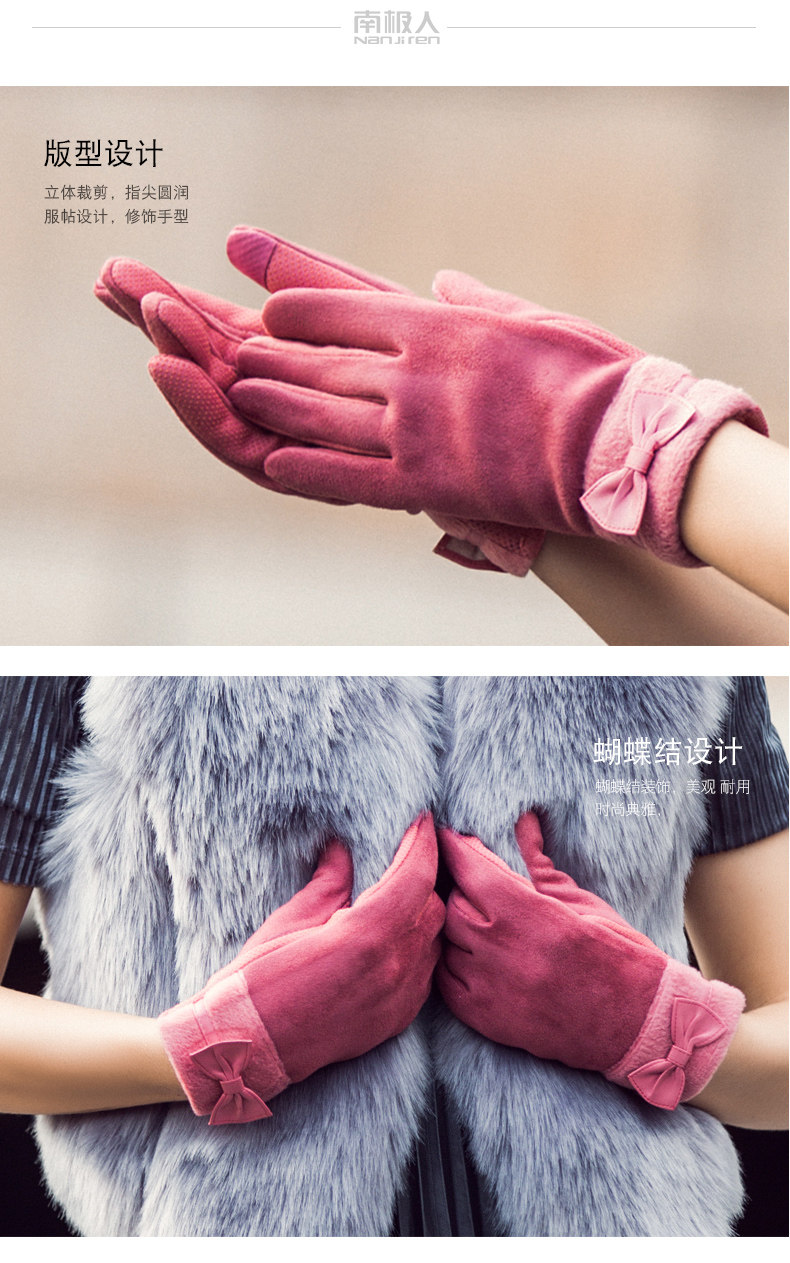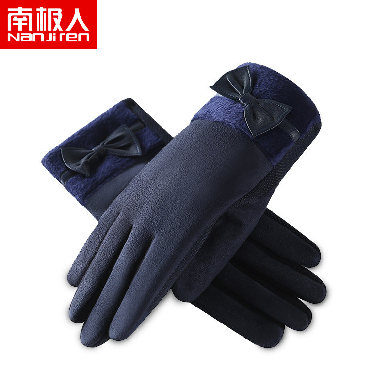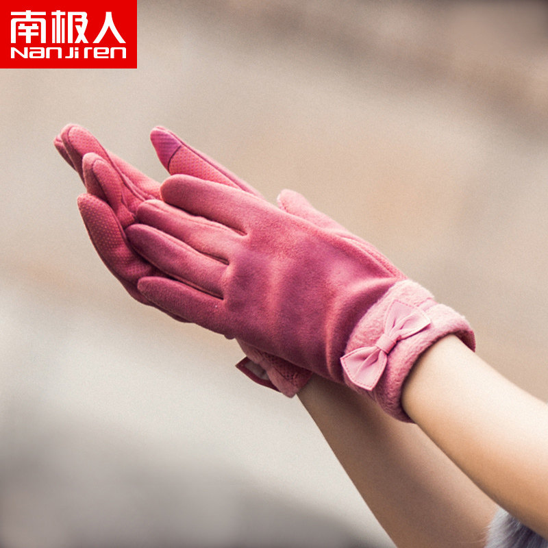 南极人 Бархатные перчатки с бантиком, ветрозащитный удерживающий тепло модный демисезонный флисовый комплект, в корейском стиле
