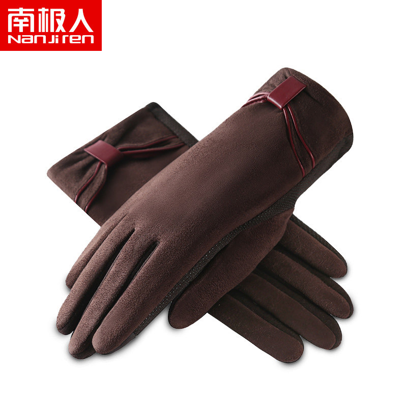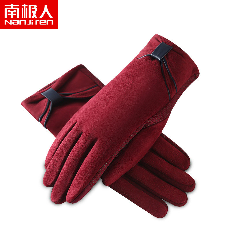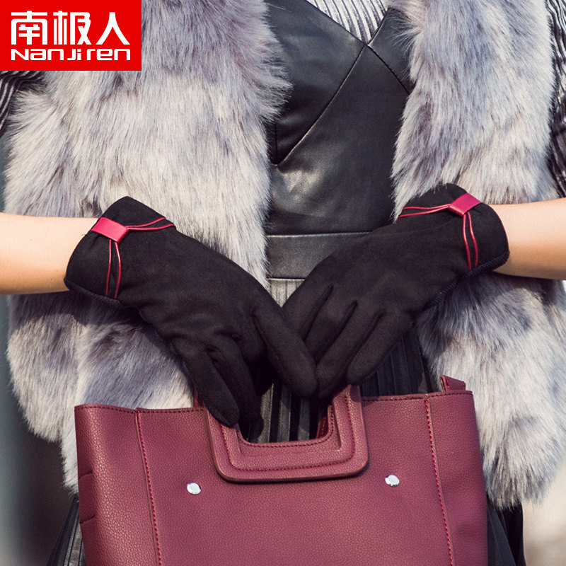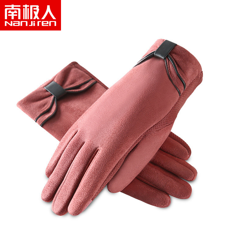 Милые бархатные перчатки, удерживающий тепло демисезонный комплект с бантиком для школьников, в корейском стиле